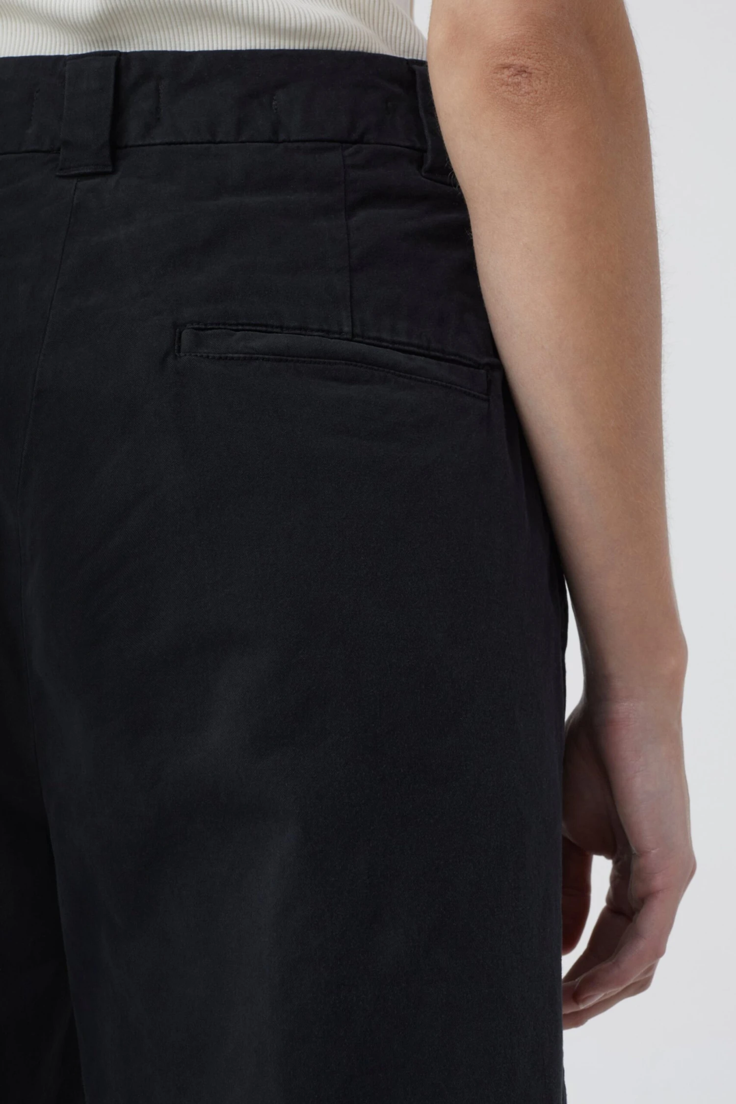 New Wide Fit Barton mit hohem Bund, geradem Beinverlauf, seitlichen Eingrifftaschen und geknöpften Taschen auf der Rückseite. Aus weichem italienischem Baumwoll-Stretch mit feiner Twill-Struktur. Für eine dezente Used-Optik wurde die fertige Hose gefärbt und gewaschen (Garment-dye-Finish).