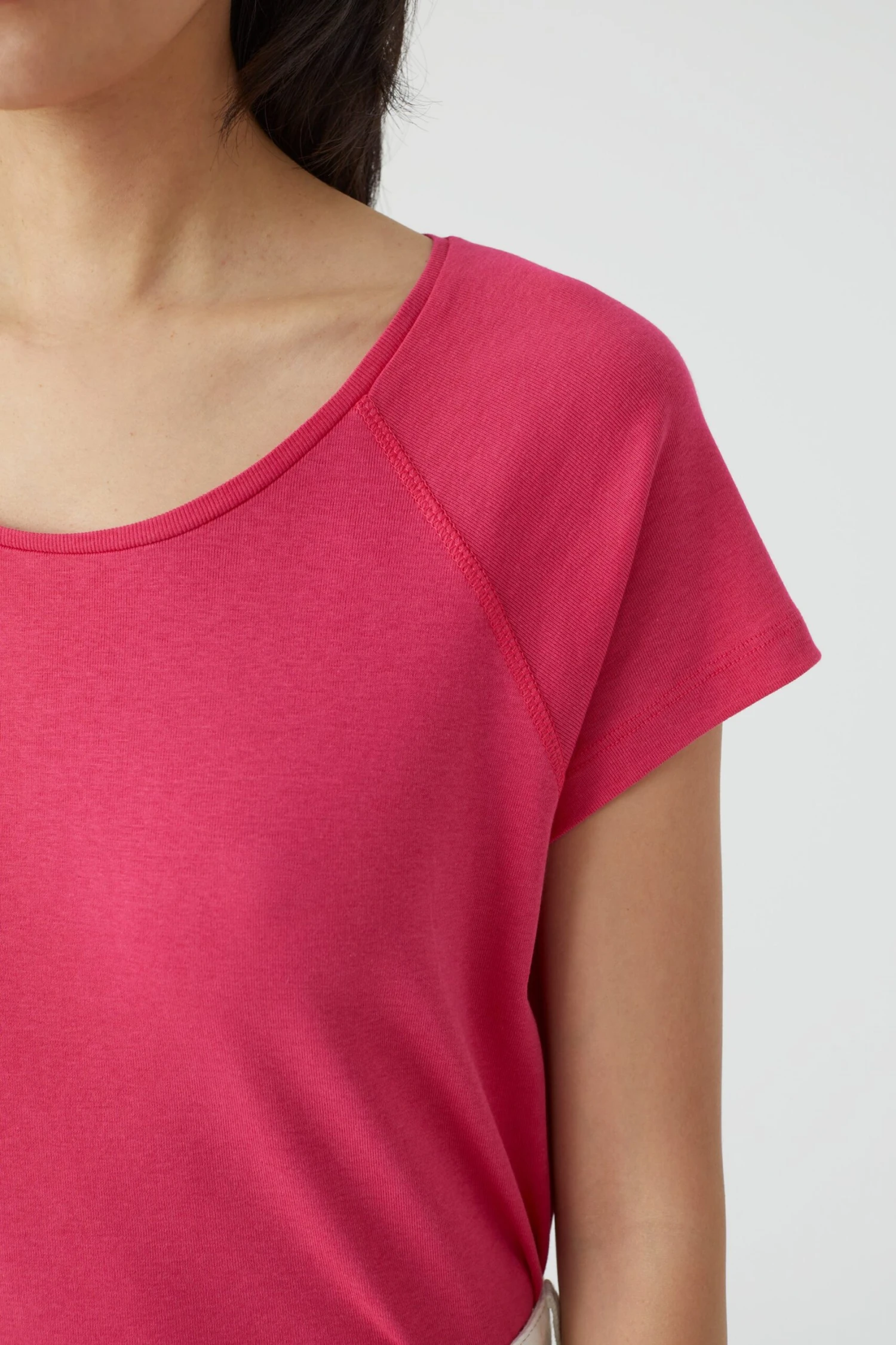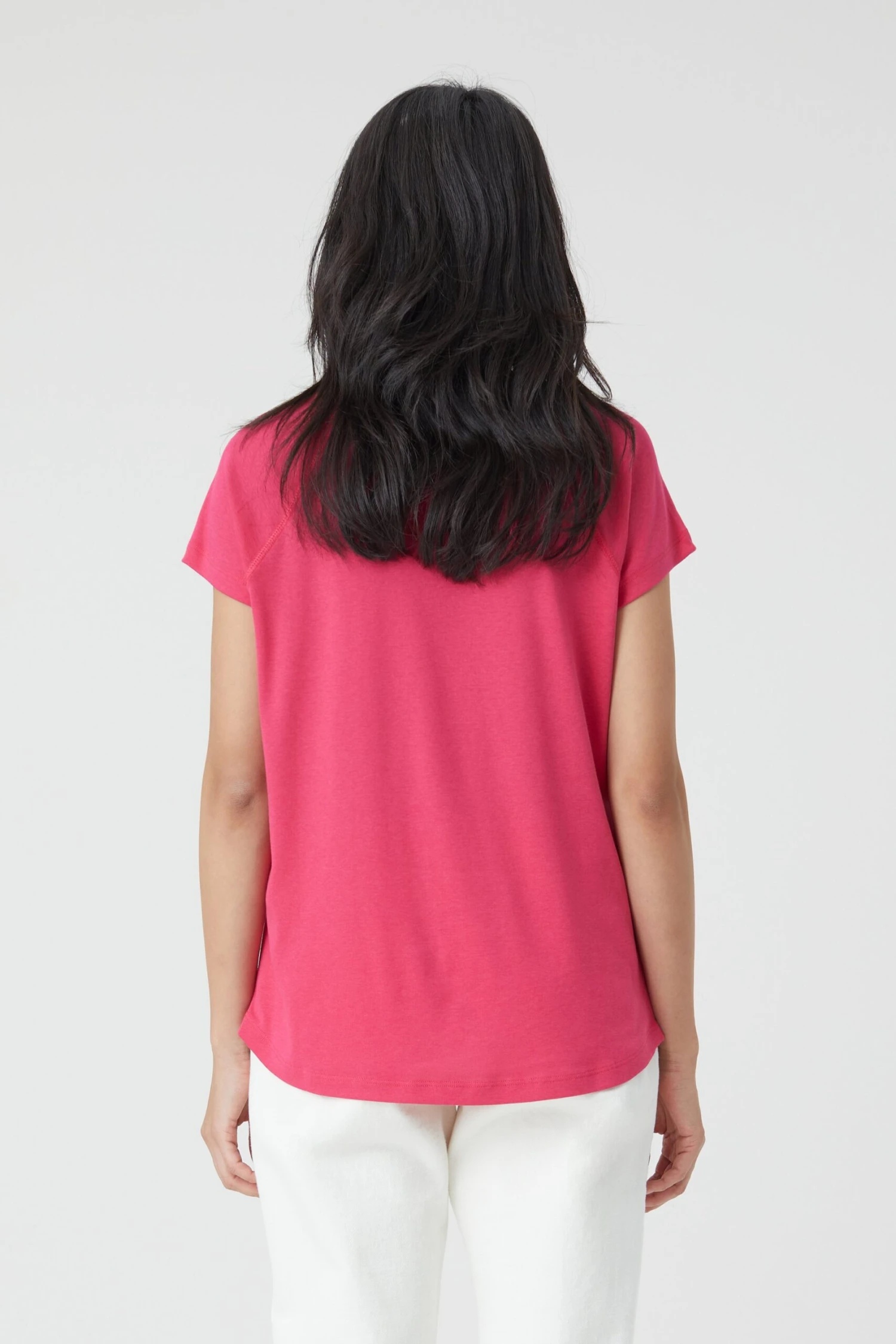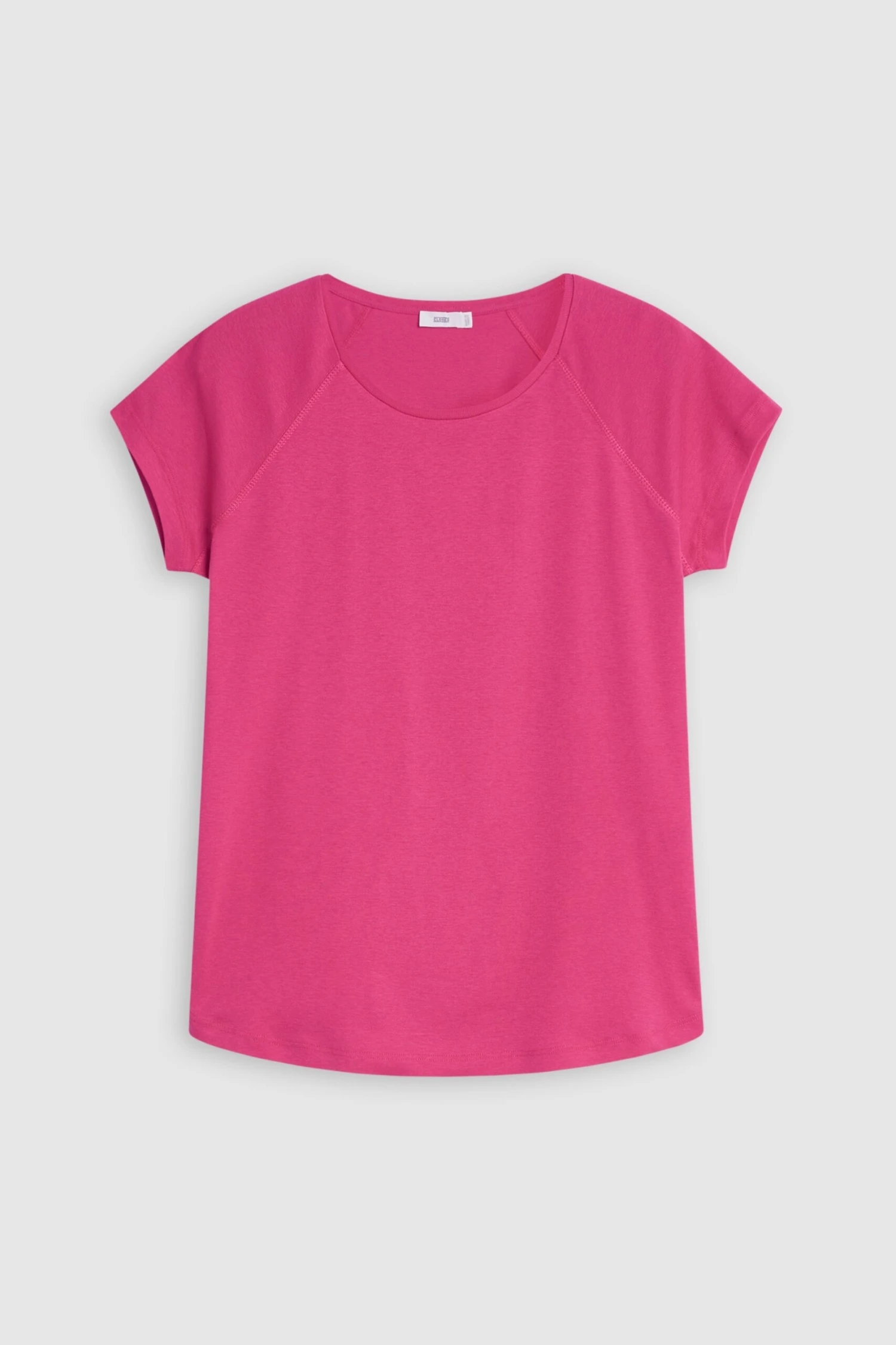Basic T-Shirt mit Raglanärmeln aus leichtem und weichem Jersey aus Baumwolle und Modal. Cleane Verarbeitung mit Rundhalsausschnitt und gerundetem Saum.