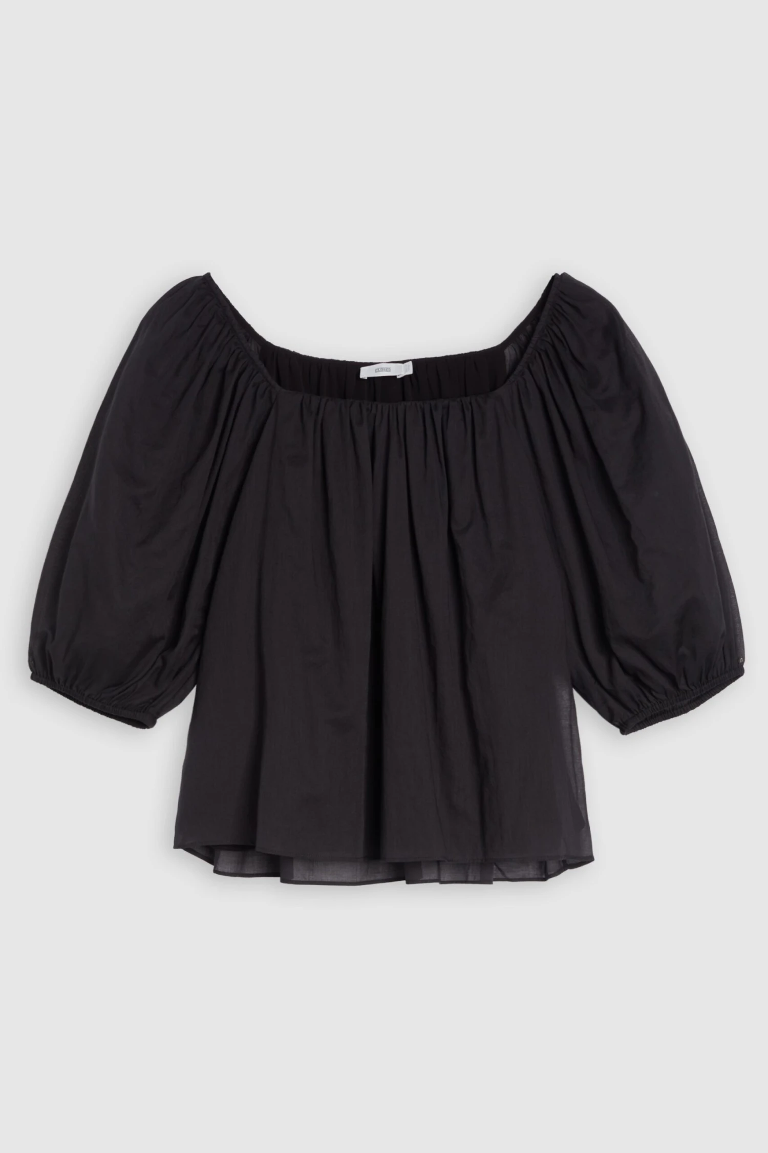 In A-Linie geschnittene Halbarmbluse aus sehr leichtem Baumwoll-Voile mit elastischen Ärmelabschlüssen und Futter aus Viskosestoff.