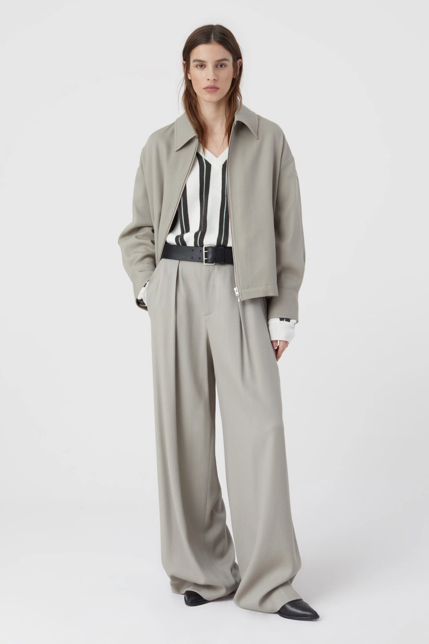 V-Pullover mit Längsstreifen aus weichem Merino-Cashmere-Mix im Feinstrick (12 gg). Relaxed Fit mit V-Ausschnitt und Rippbündchen.