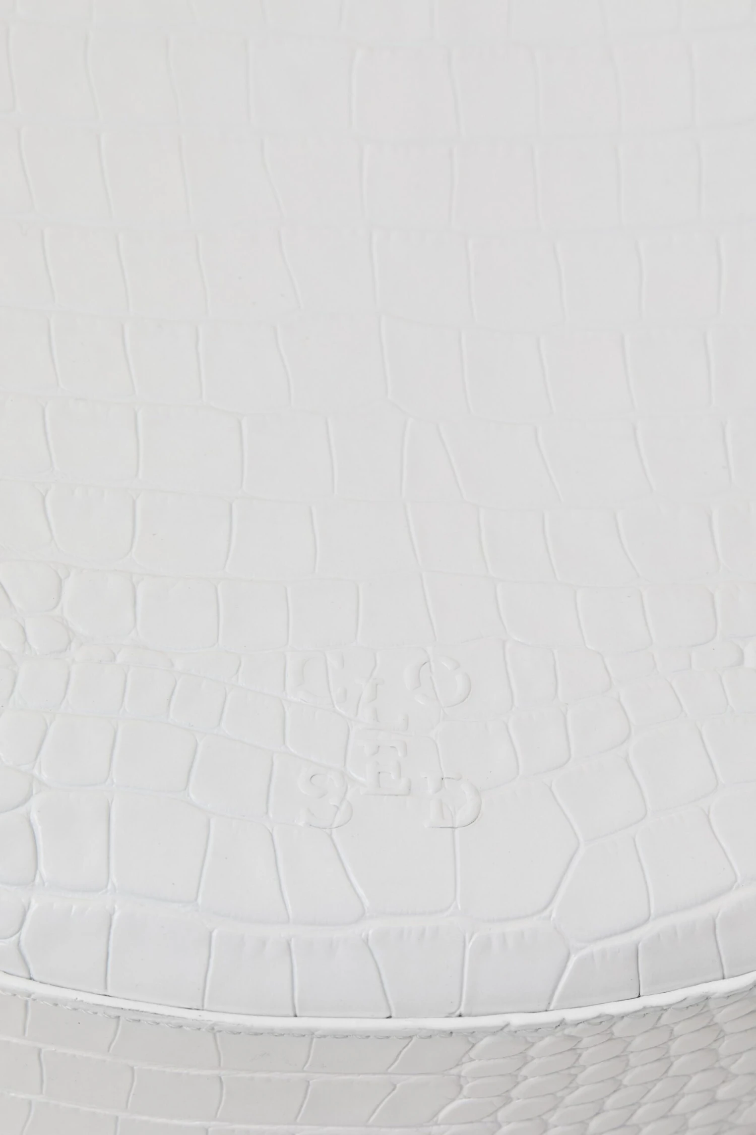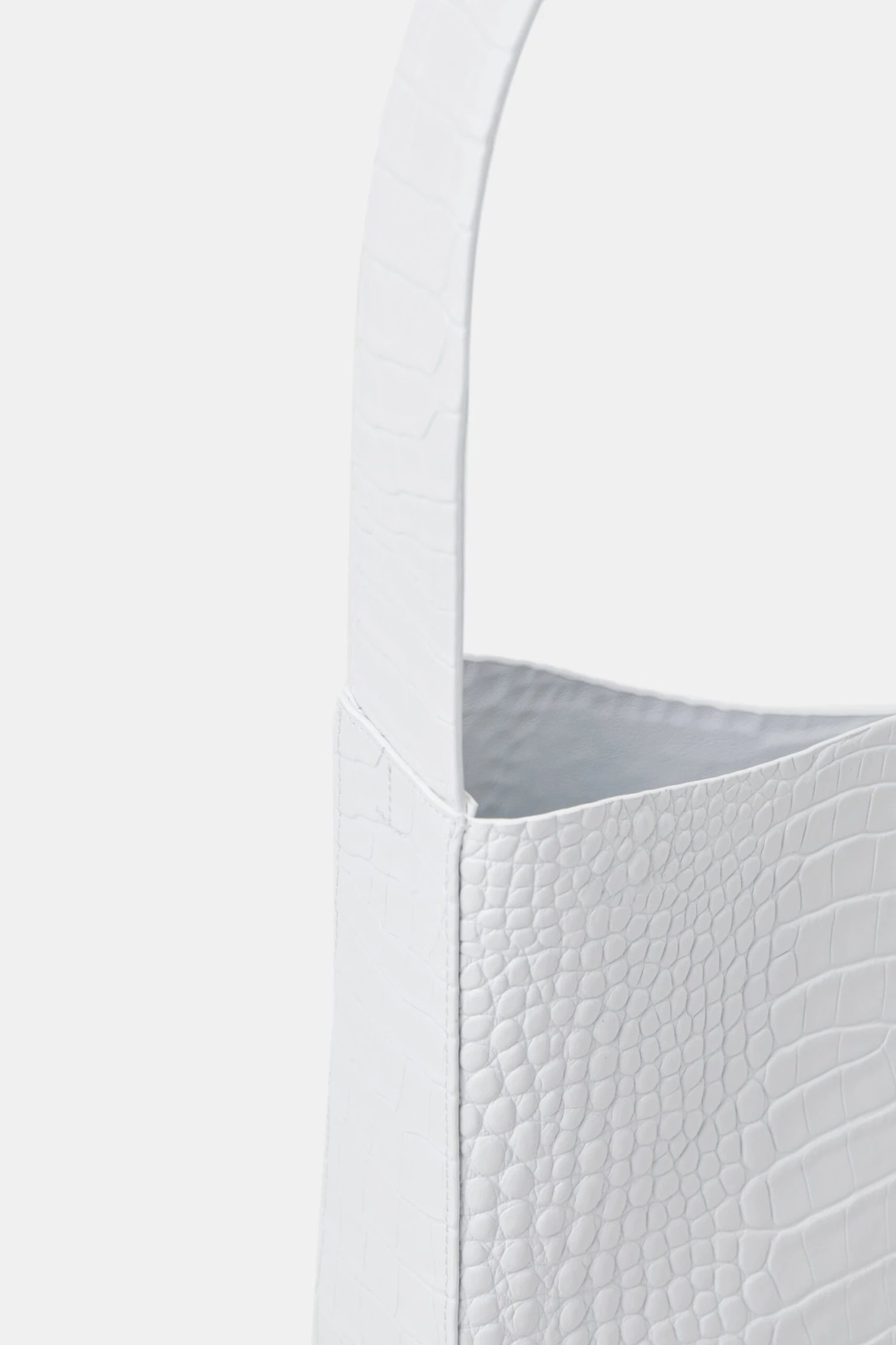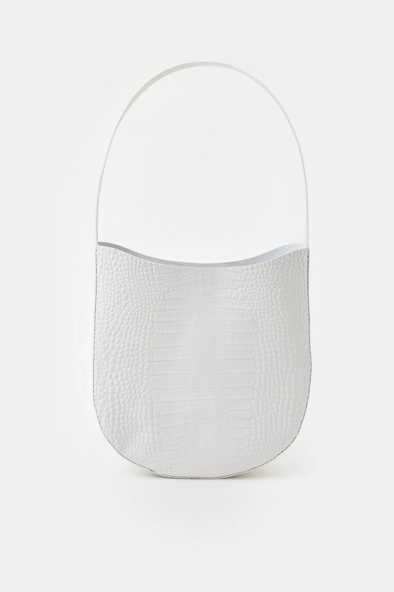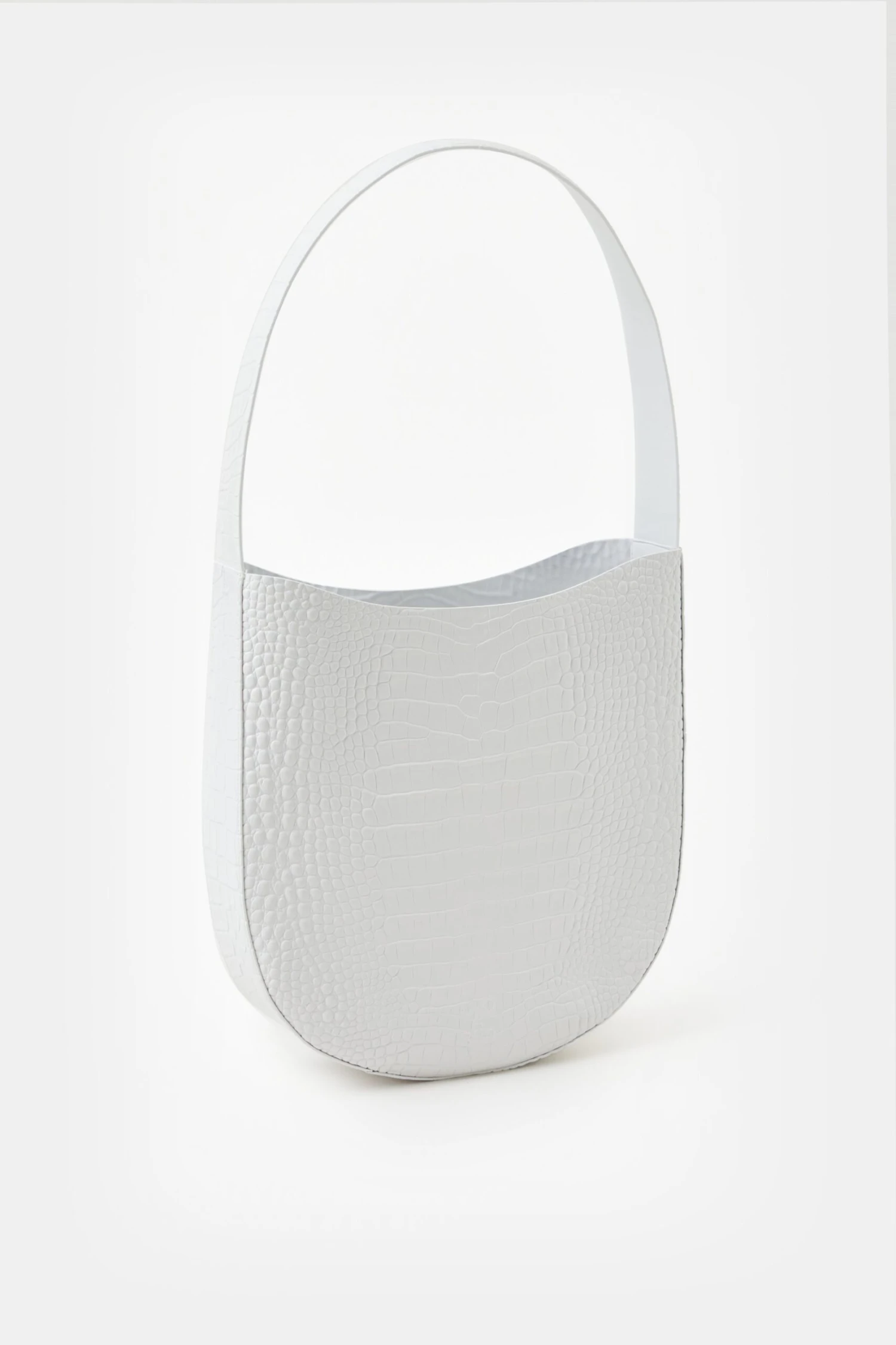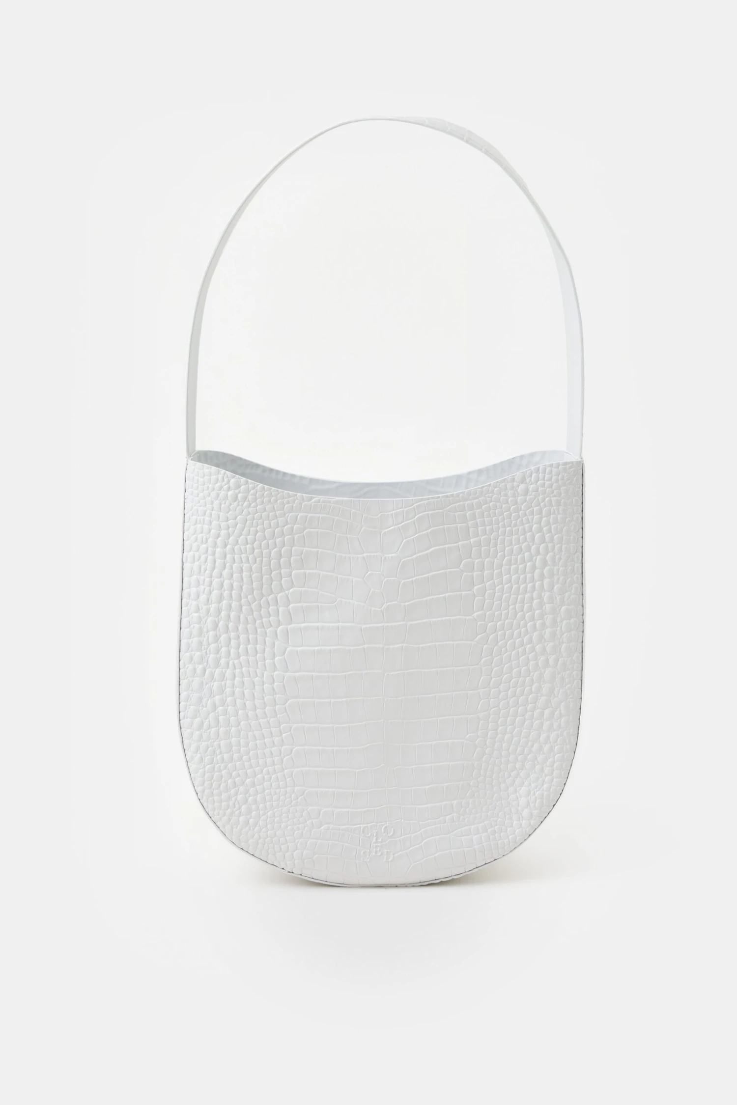 Mit Kroko-Prägung und Monogramm auf semi-glänzendem Leder: Unsere Half Round Bag mit breitem Riemen. Gefertigt aus großen Lederzuschnitten mit mehrfach handgefärbten und polierten Kanten. Kann per Druckknopf verschlossen werden und hat ein Steckfach innen.