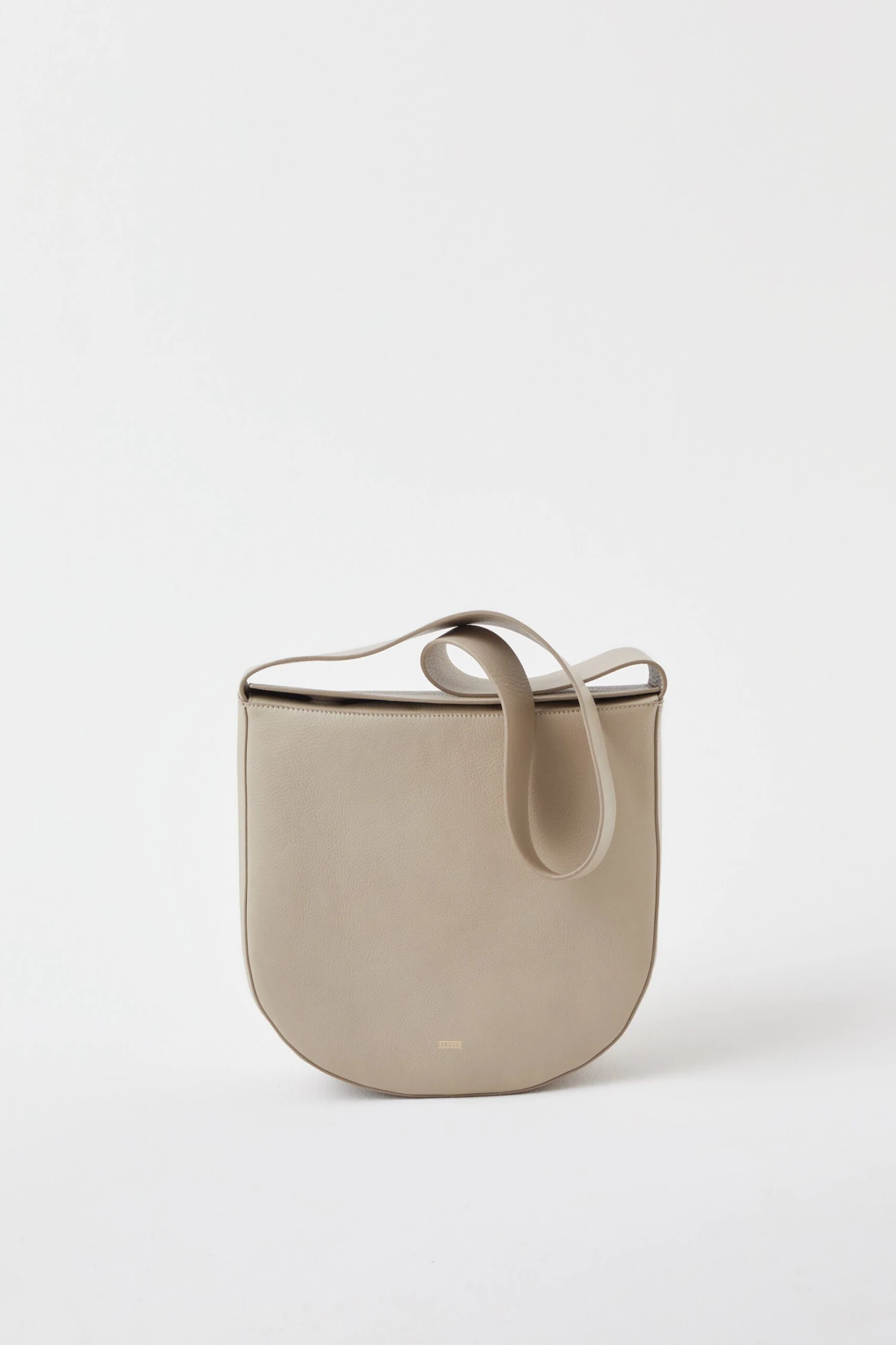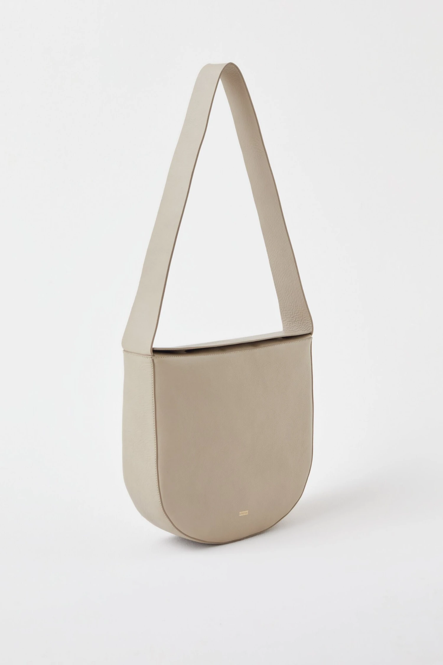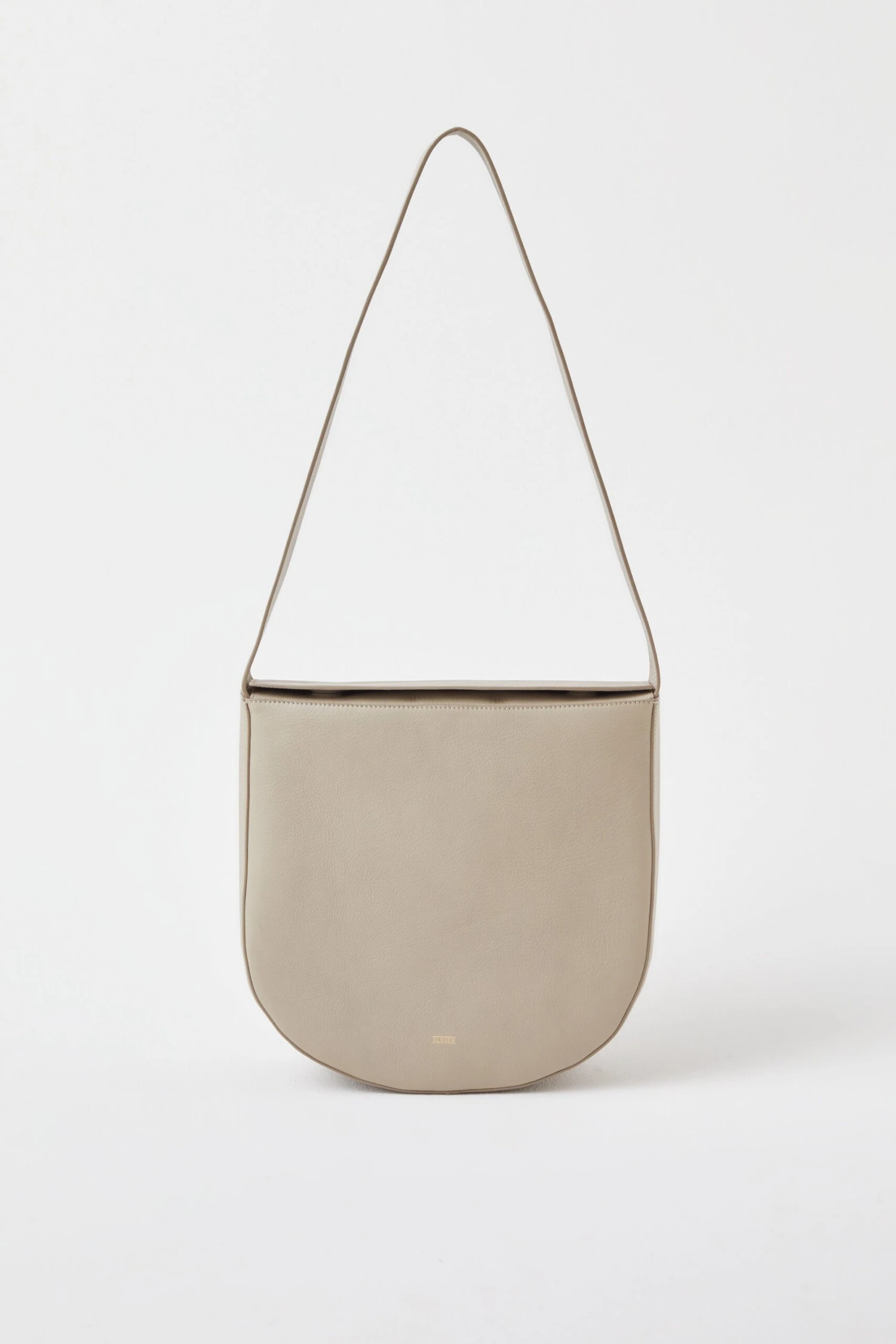 Aus deutlich strukturiertem Leder mit mehrfach handgefärbten und polierten Kanten gefertigt: Tasche mit breitem Riemen, Umschlag mit verdeckten Magnetschließen, Closed-Prägung in Metallic-Optik und Ledersteckfach innen.