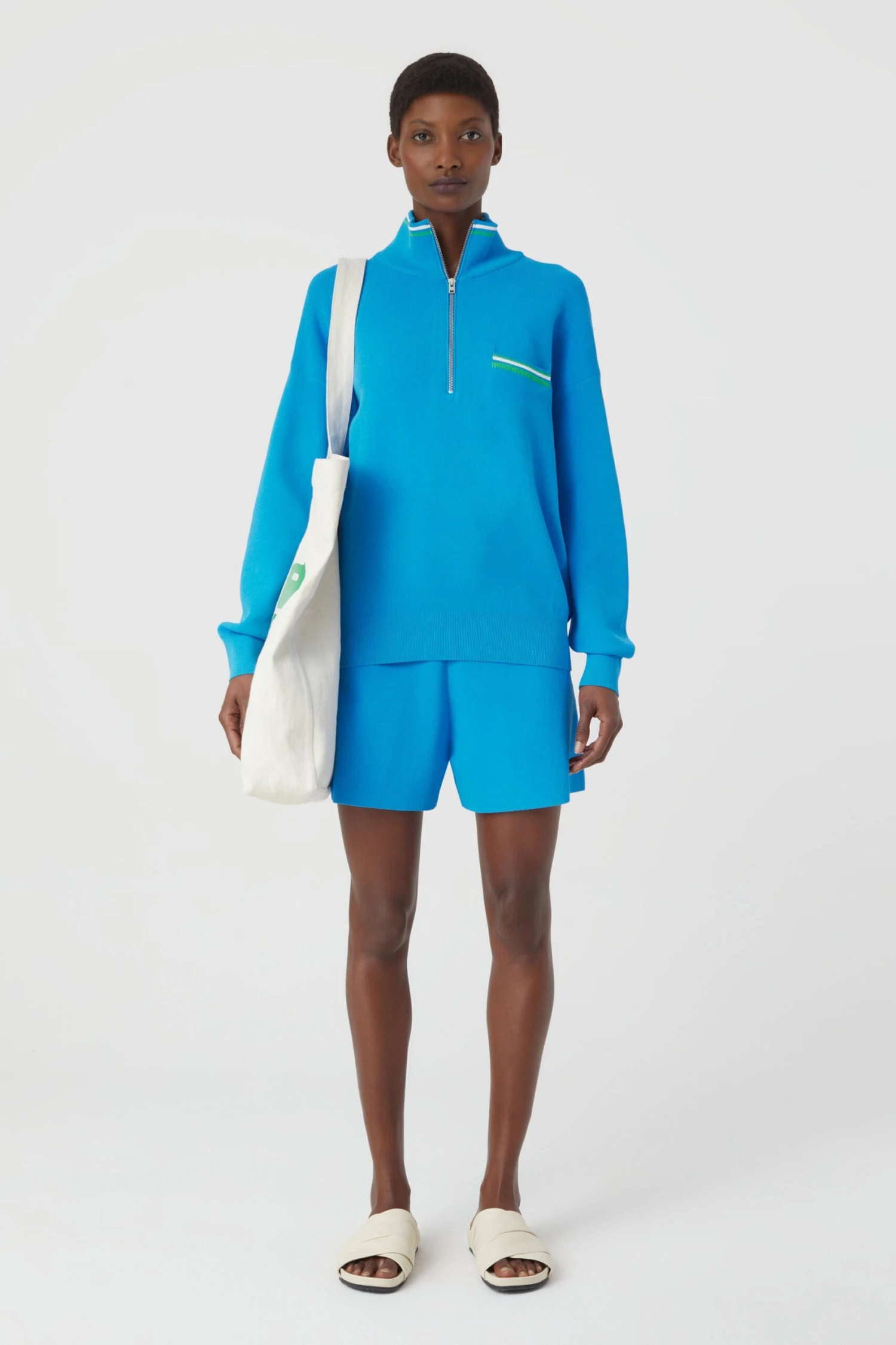 Aus hochwertigem italienischem Garn gefertigt: Doppelseitig gestrickter Halfzip Turtleneck aus Viskose-Mix mit farblich abgesetzten Streifendetails. Cleane Oberflächenstruktur mit weichem, elastischem Griff. Tracksuit-inspired Relaxed Fit mit Brusttasche auf der Vorderseite und Rippbündchen an Ärmel- und Saumabschluss.