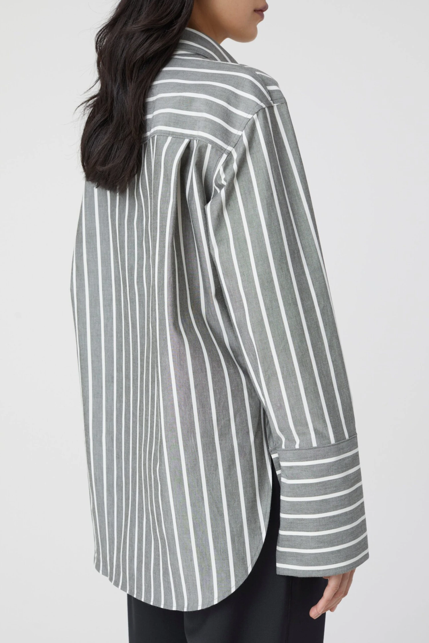 Gefertigt aus reiner Bio-Baumwolle: Hemdbluse aus portugiesischer Popeline mit Streifenmuster. Im Regular Fit mit langen Ärmeln und breiten Manschetten. Dazu durchgehende Knopfleiste mit Perlmuttknöpfen und leicht gerundetem Saum.
