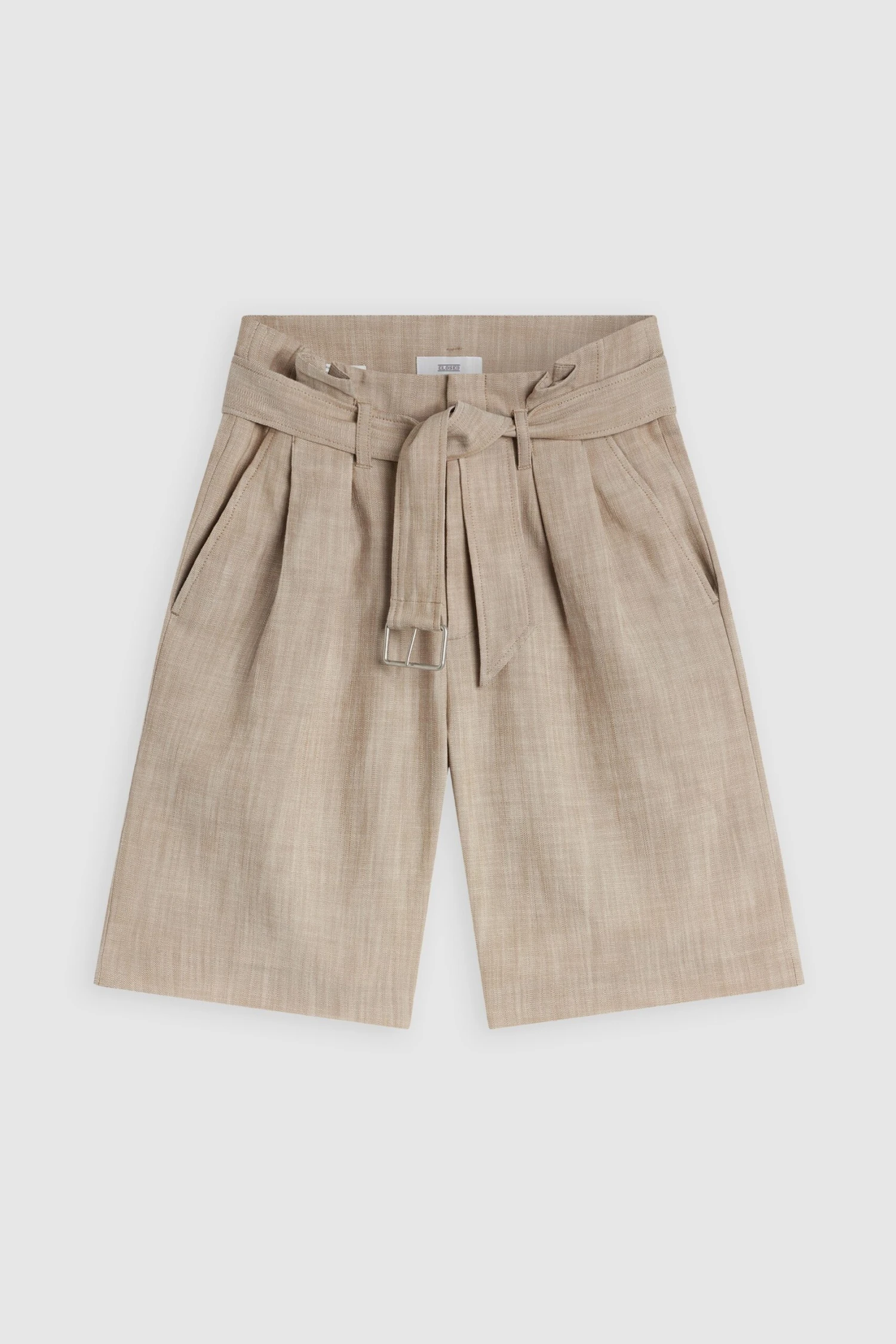 Aus weich fallendem und strukturiertem Viskose-Mix mit Elasthan-Anteil – zugeschnitten und konfektioniert bei unserem Partnerbetrieb Texdata in Rumänien: High Waist Shorts mit Bundfalten und Gürtel. Im Regular Fit mit seitlichen Eingrifftaschen.