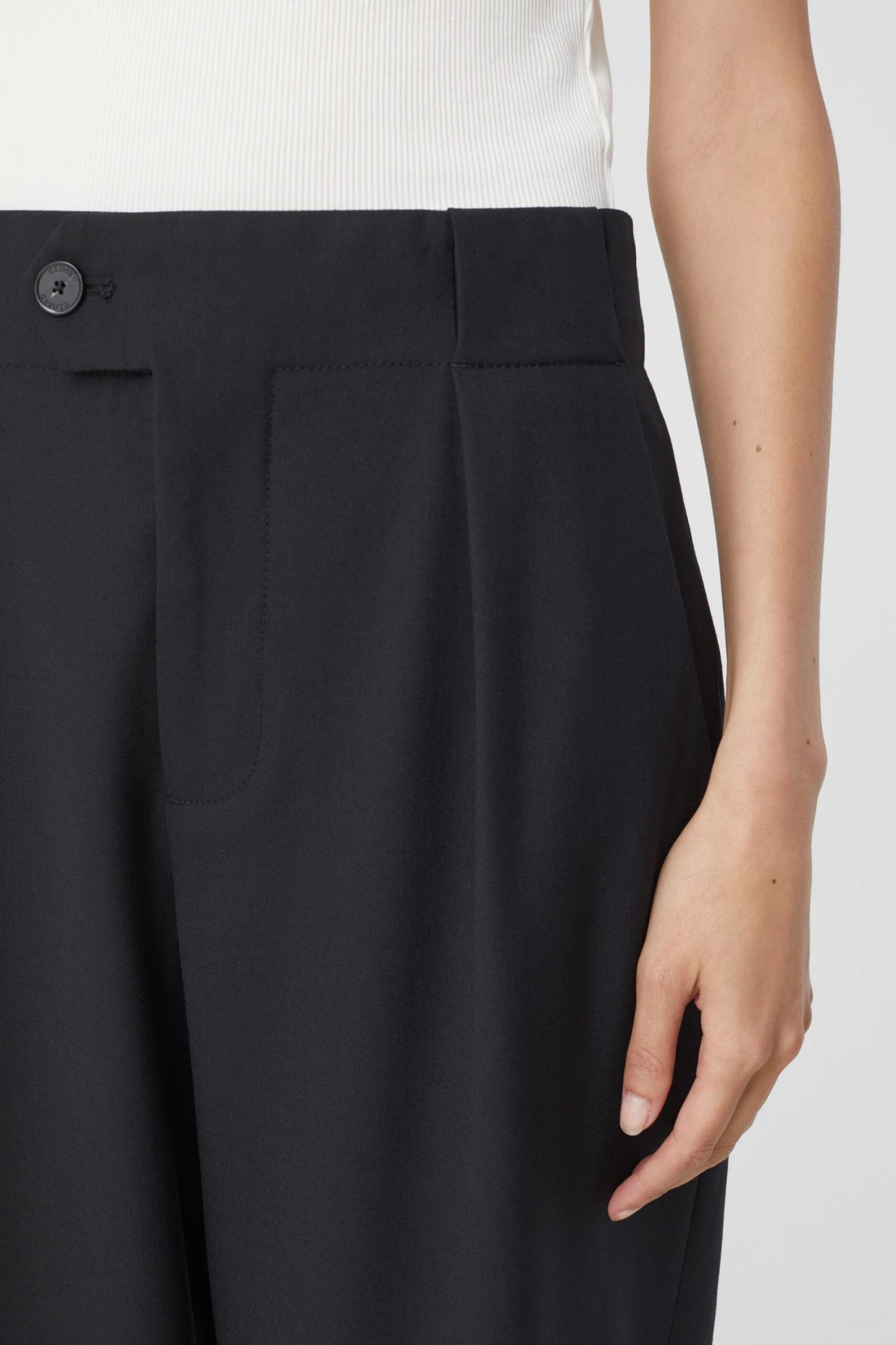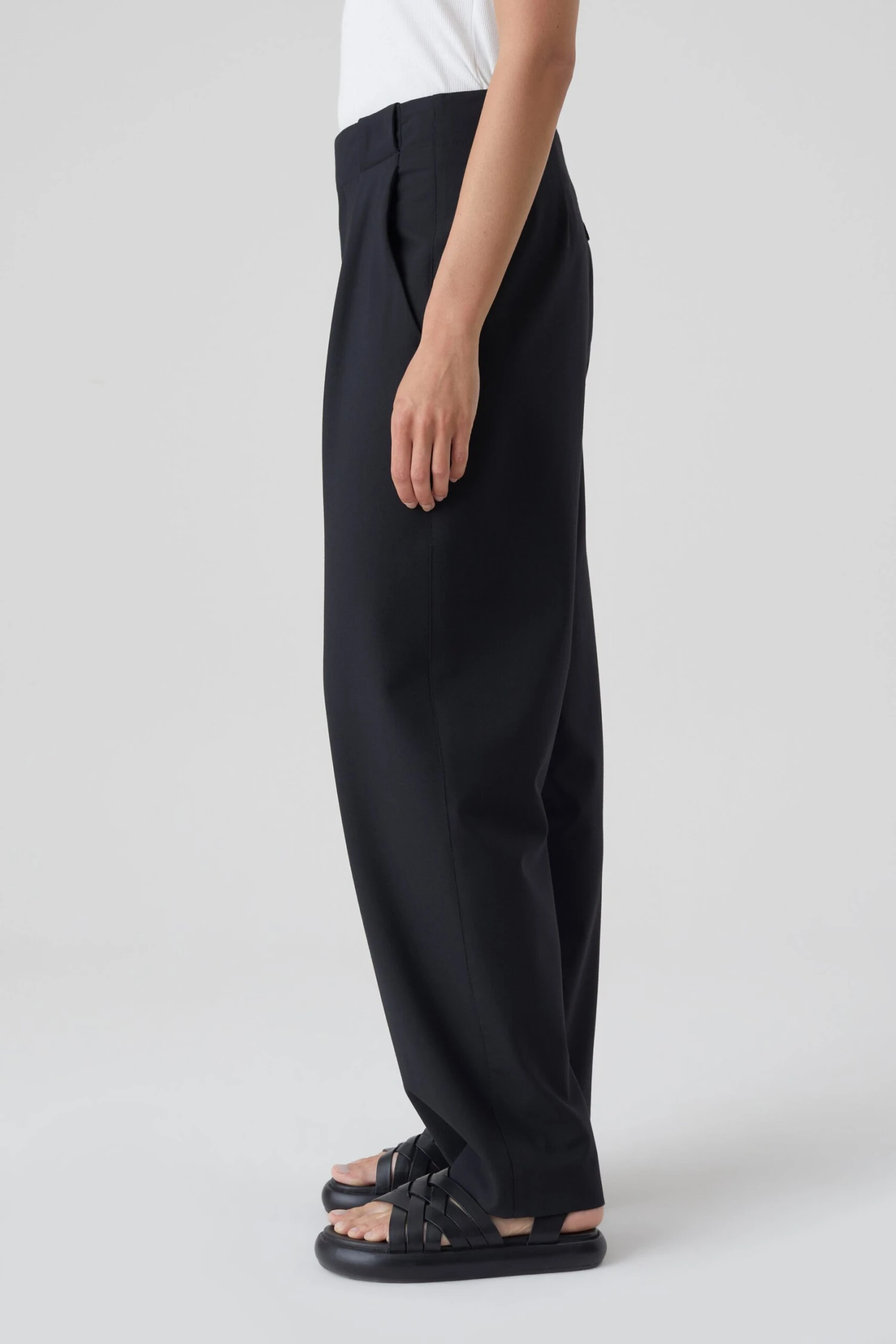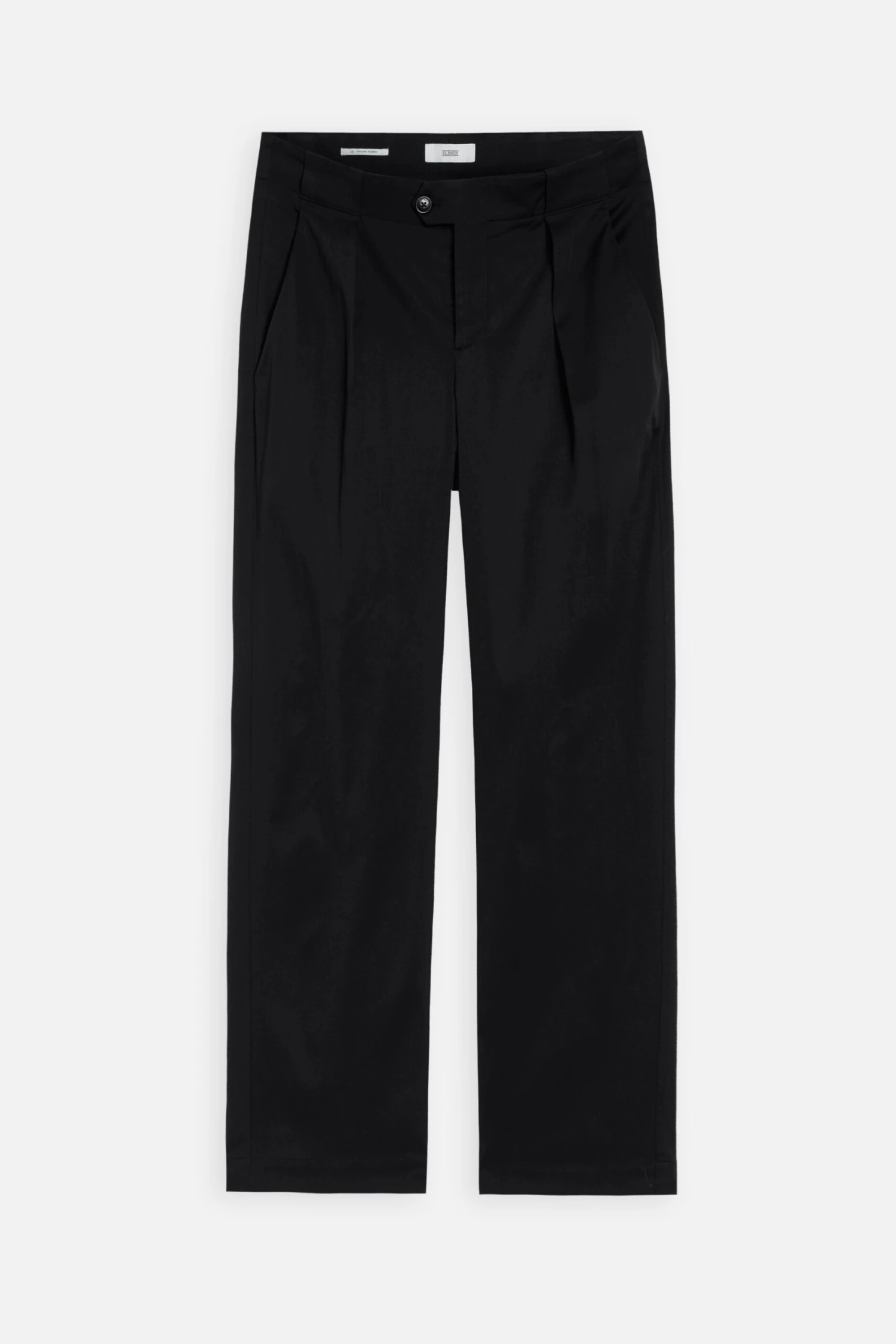 Style Mawson aus leichter Qualität im cleanen Look mit Schurwolle und Elasthan. Relaxed Fit mit Bundfalten und seitlich versetzter Knopfschließe sowie mit seitlichen Eingrifftaschen und geknöpften Pattentaschen auf der Rückseite.