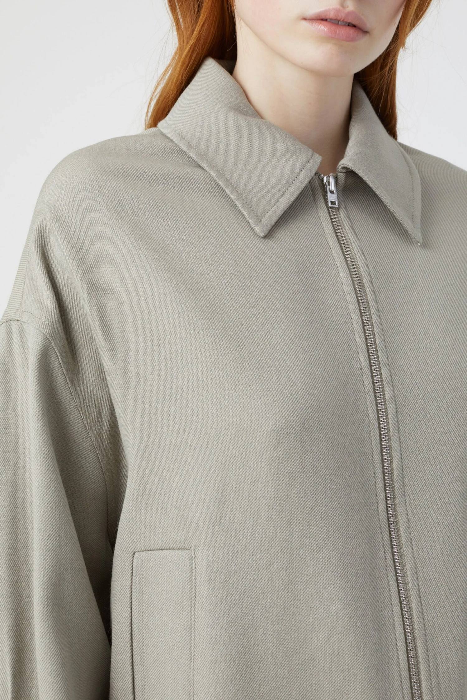 Overshirt mit Zipper aus italienischem Schurwolle-Mix mit Viskose-Anteil und Twill-Struktur – italienische Qualität. Relaxed Fit mit überschnittener Schulter, Manschetten und Leistentaschen.