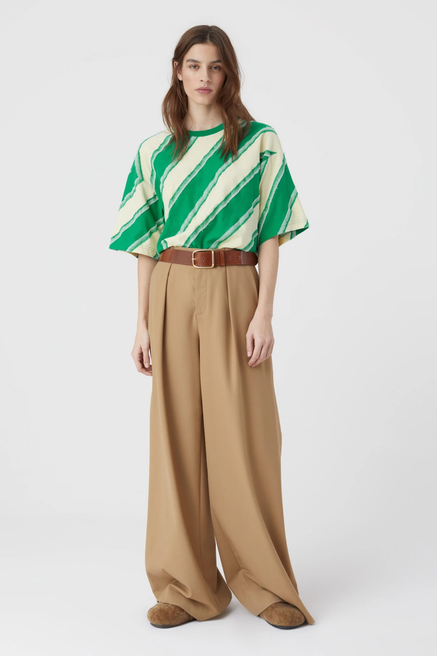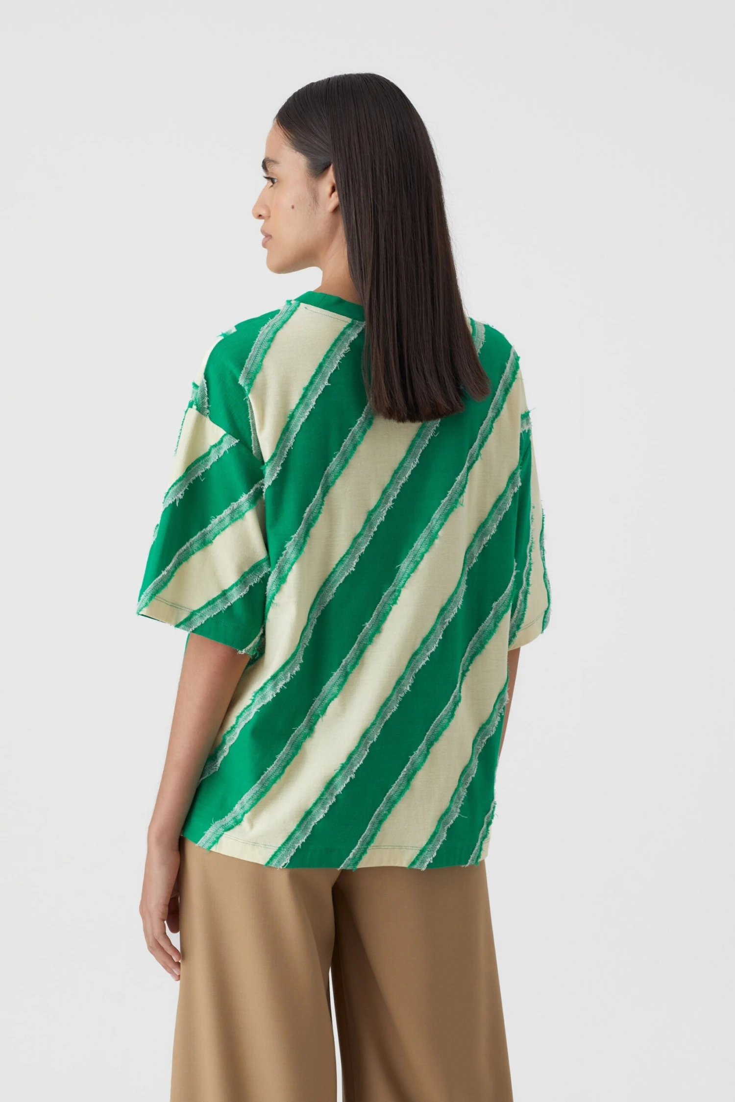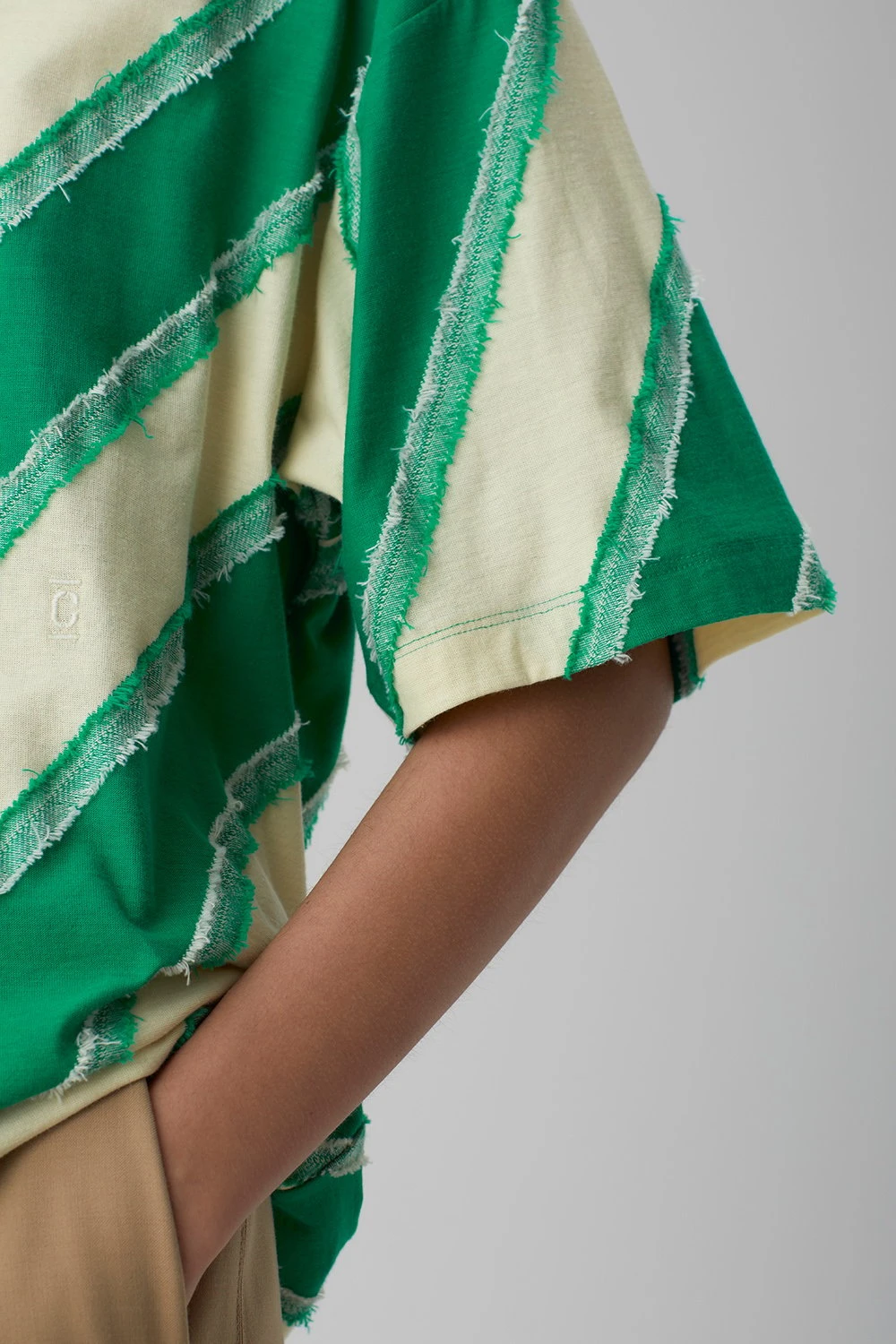 Hergestellt aus Bio-Baumwolle: Relaxed T-Shirt im zweifarbigen Patchwork mit Fransen-Details, C-Stitching, Rundhalsausschnitt und weiten Ärmeln.
