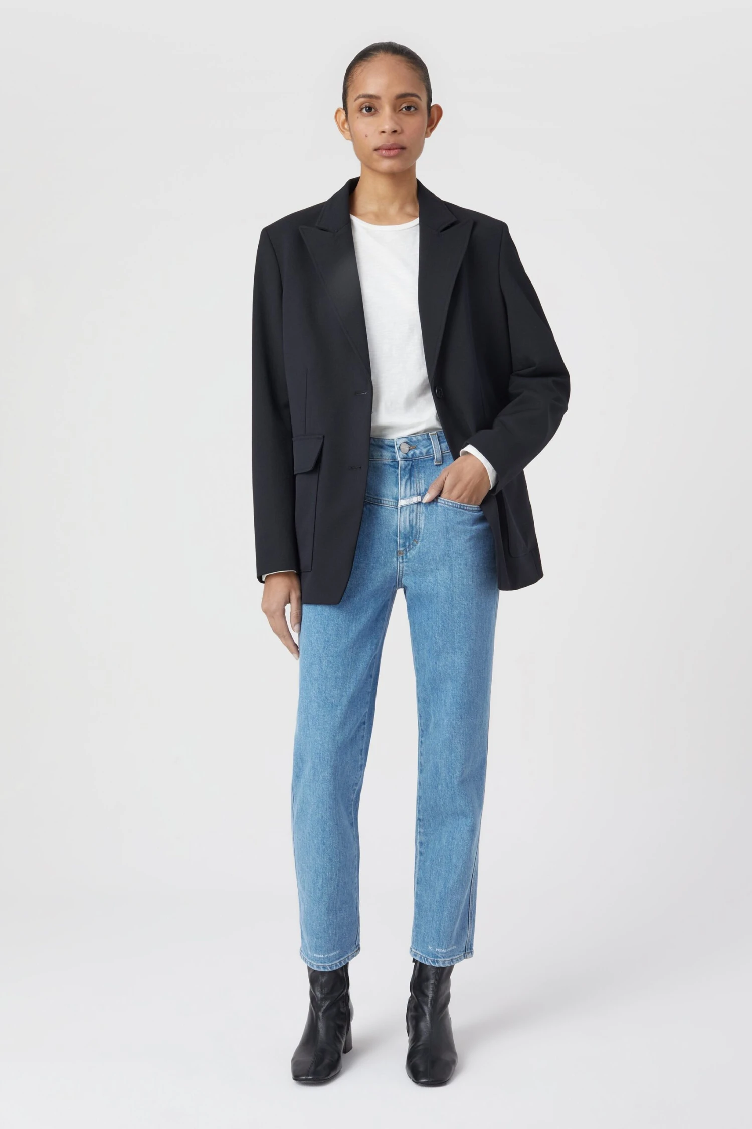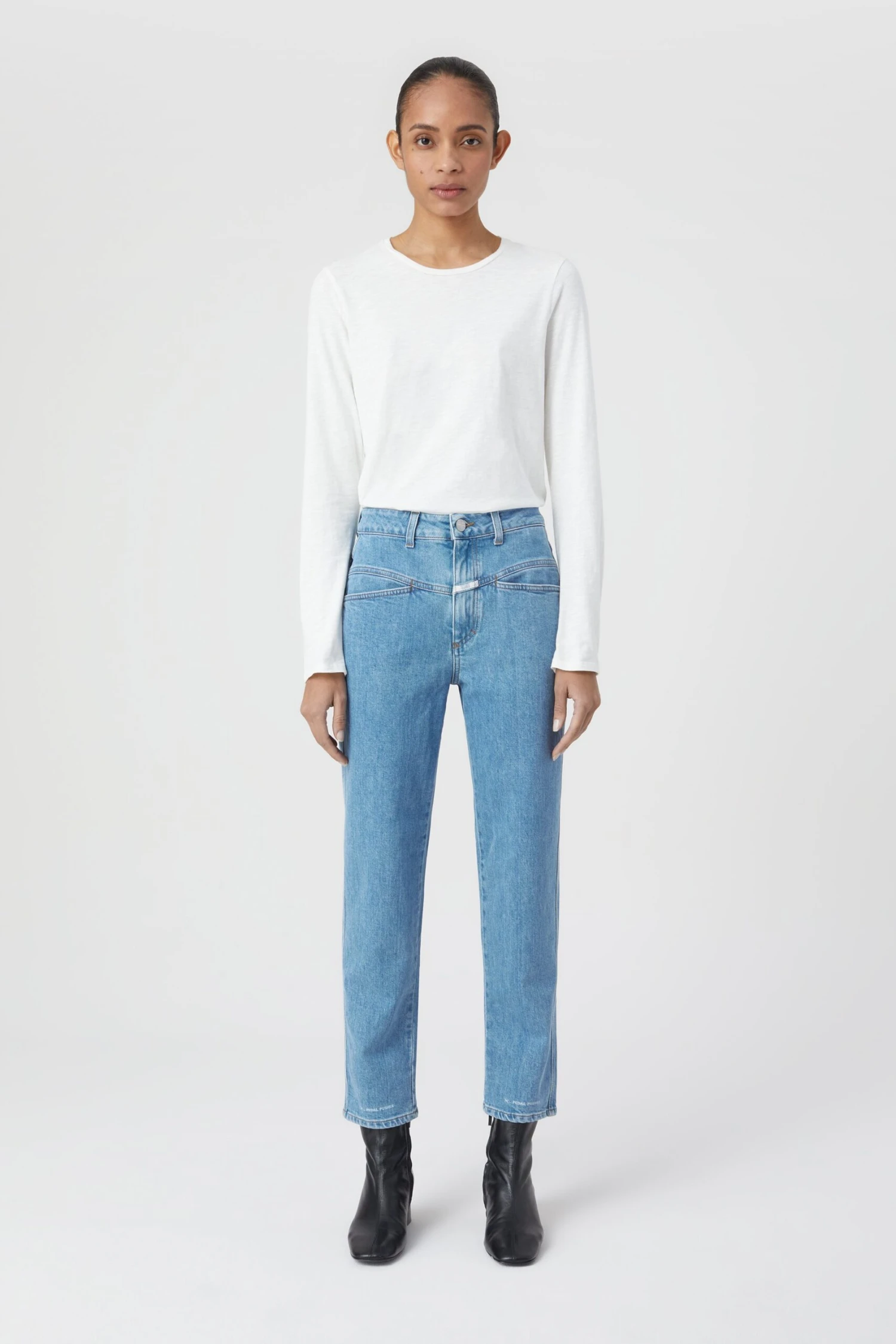 Gefertigt aus italienischem Comfort Stretch Denim von Candiani – gewebt aus Bio-Baumwolle und Elasthan: X-Pocket-Jeans im Heritage Fit mit hohem Bund. Teil unserer nachhaltigen Denim-Linie A BETTER BLUE.