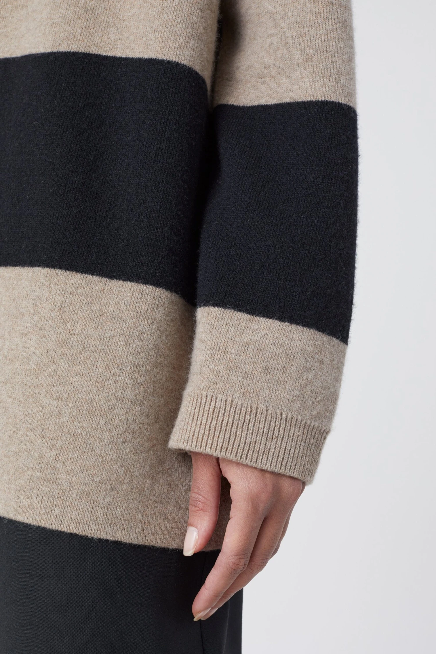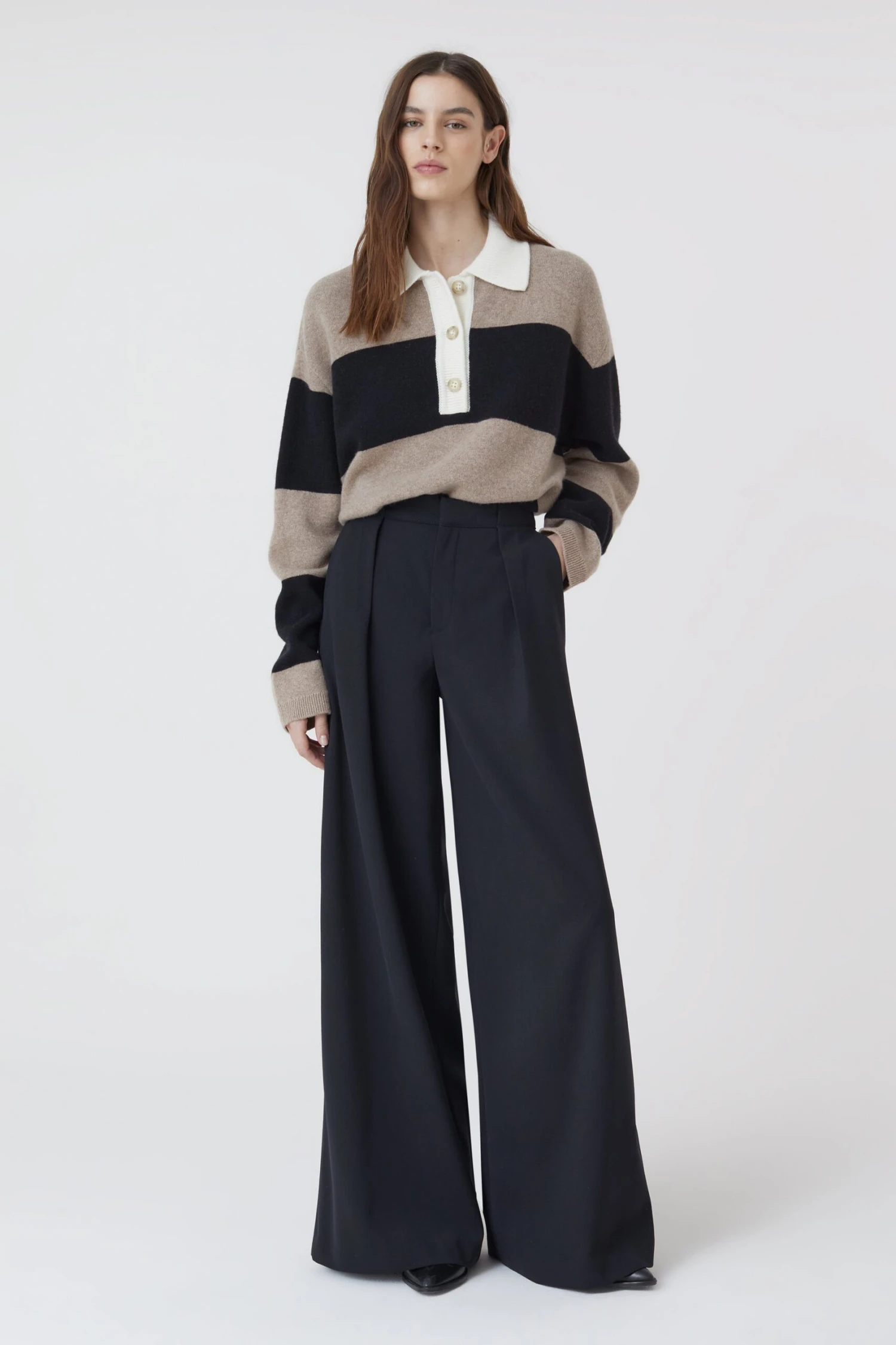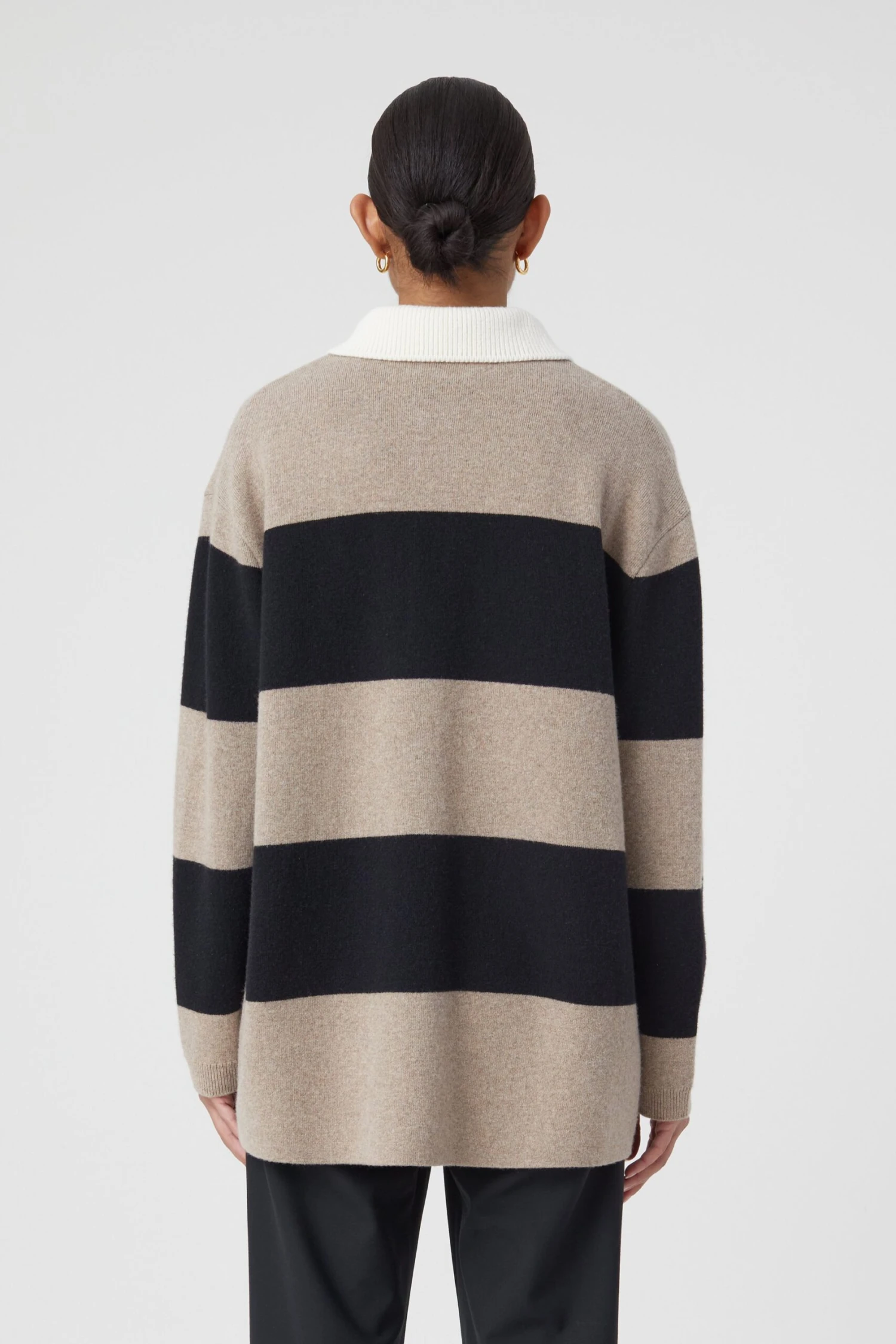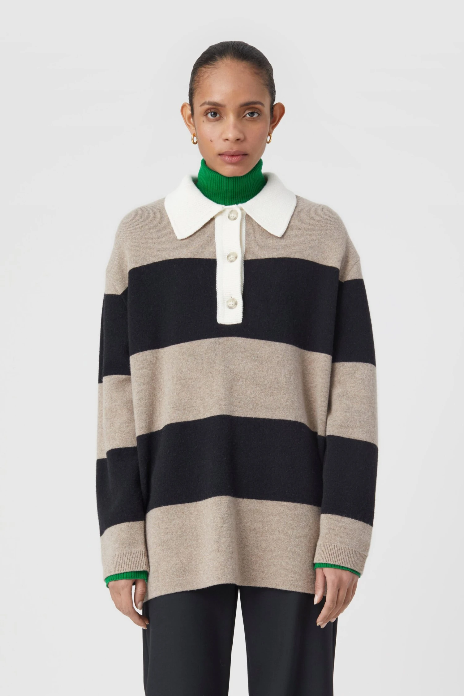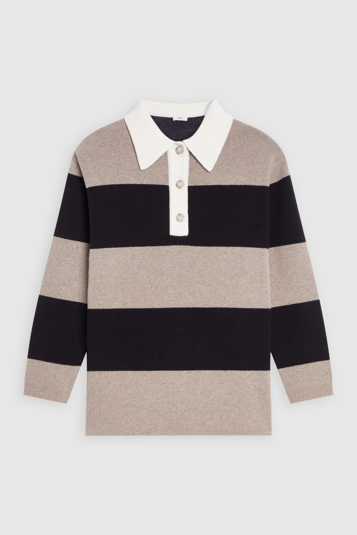 Oversized Poloshirt mit Streifen aus italienischem Garn im Relaxed Fit. Mit leicht überschnittenen Schultern, Knöpfen in Horn-Optik, Bündchen an den Ärmeln und geradem Saum.