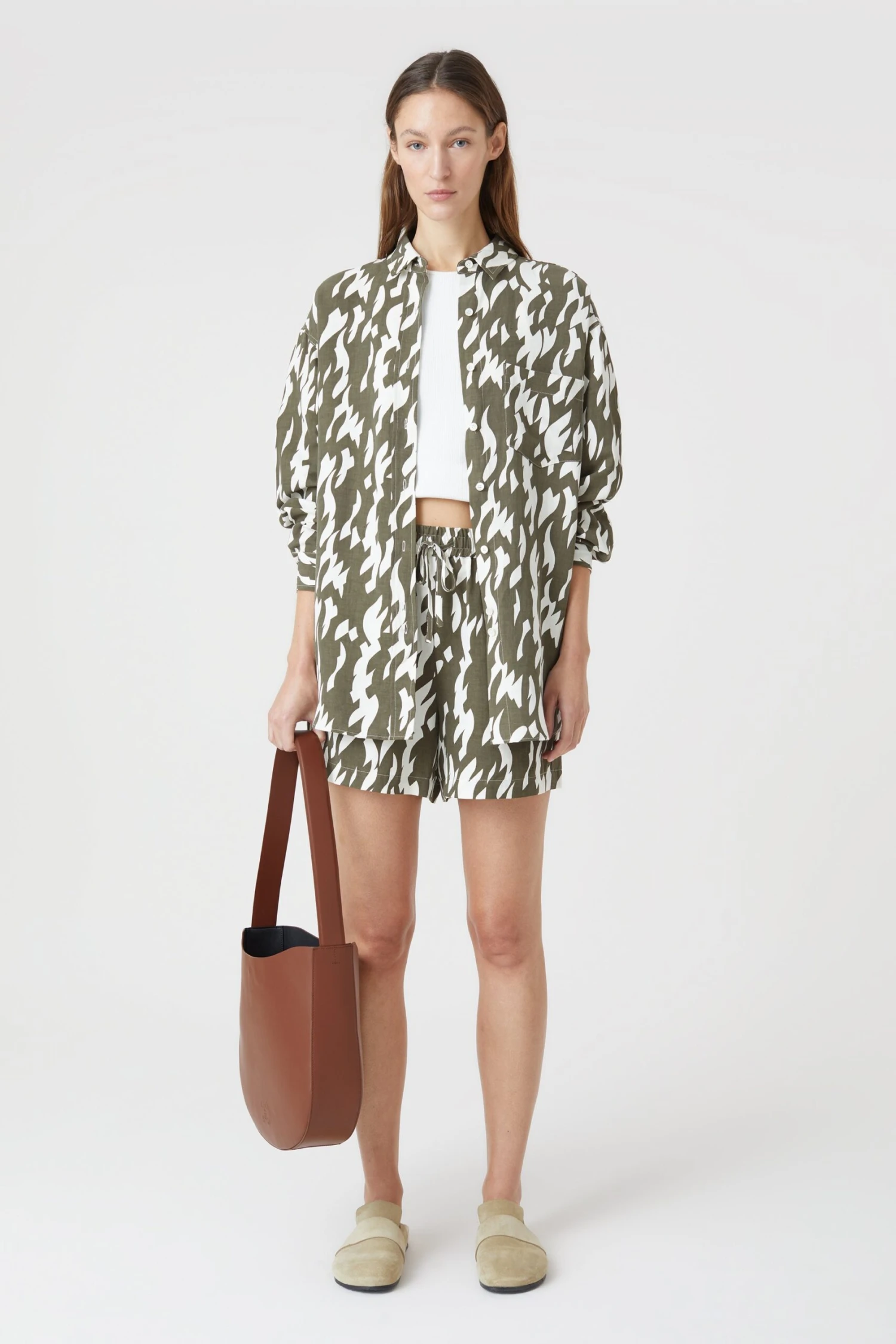 Unser Basic Shirt mit grafischem Muster besteht aus Seide und Leinen. Das relaxt geschnittene Hemd hat einen sehr weichen Griff und eine fließende Optik. Es ist mit einer Brusttasche, Perlmuttknöpfen und Manschetten ausgestattet.