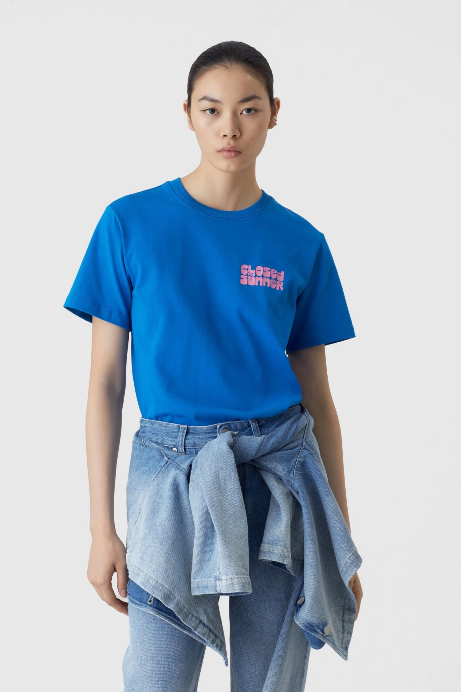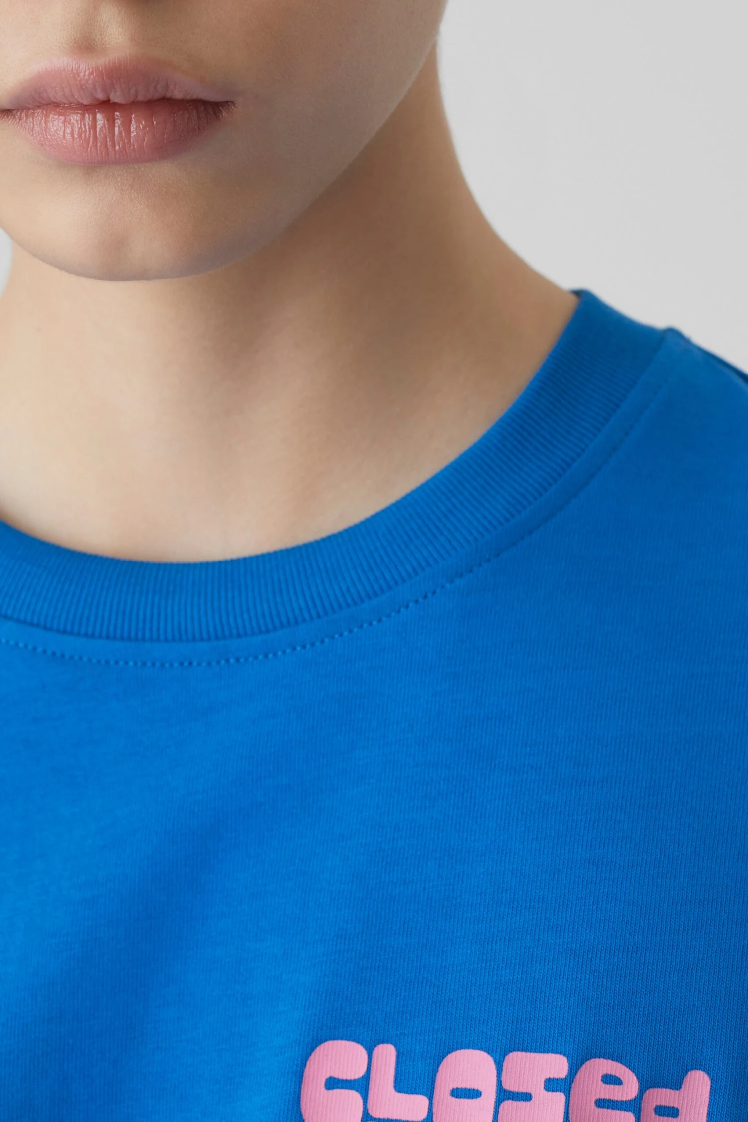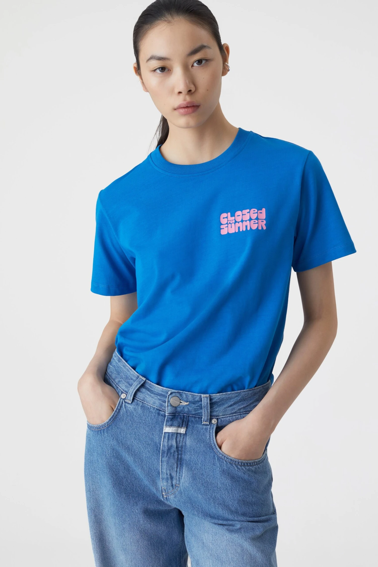 Regular Fit aus reiner Baumwolle: T-Shirt mit geripptem Rundhalsausschnitt und Closed-Print auf der Vorderseite.
