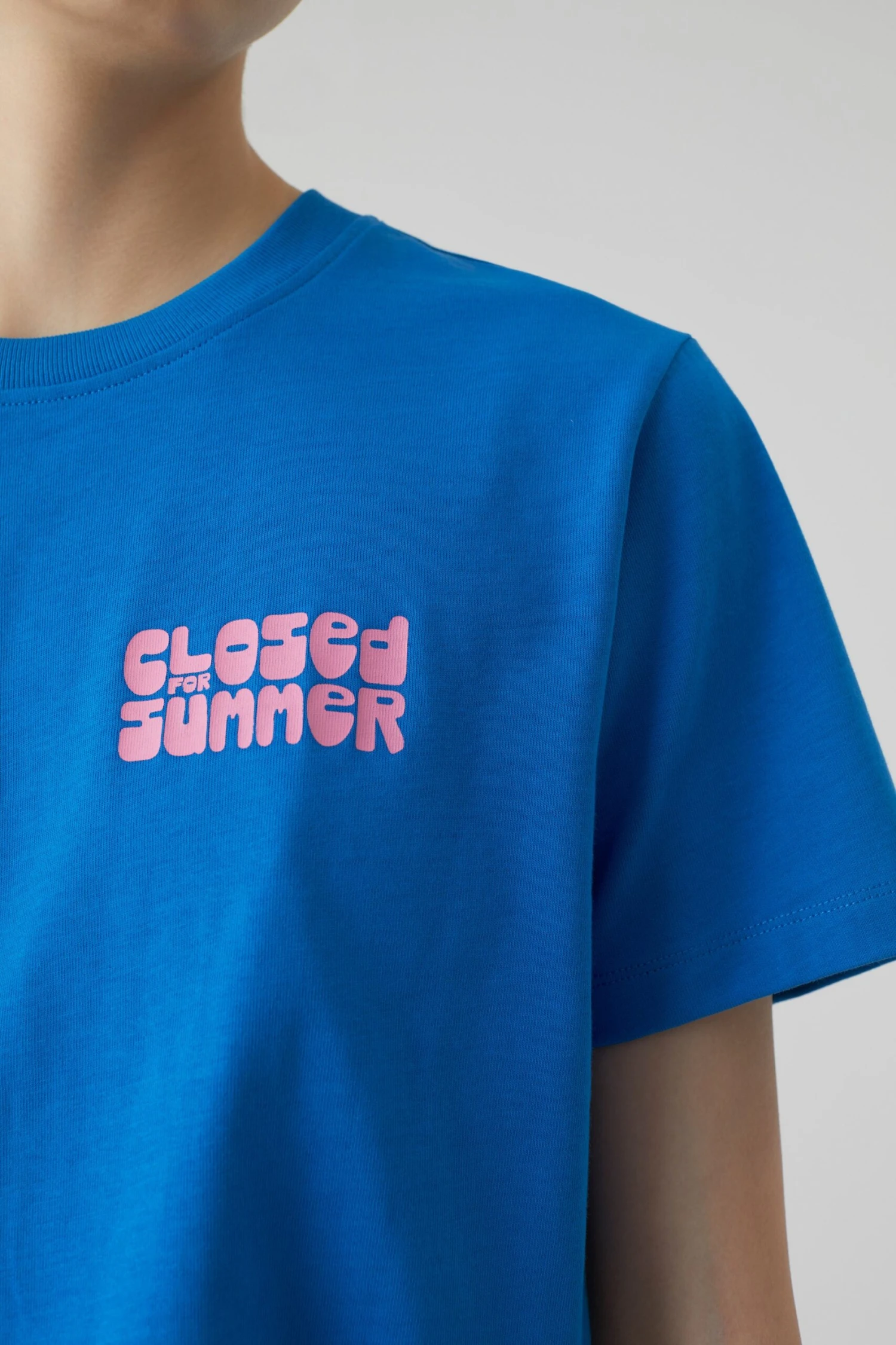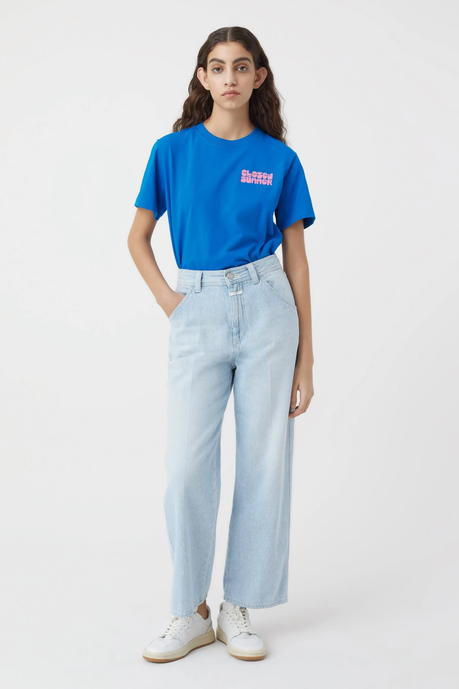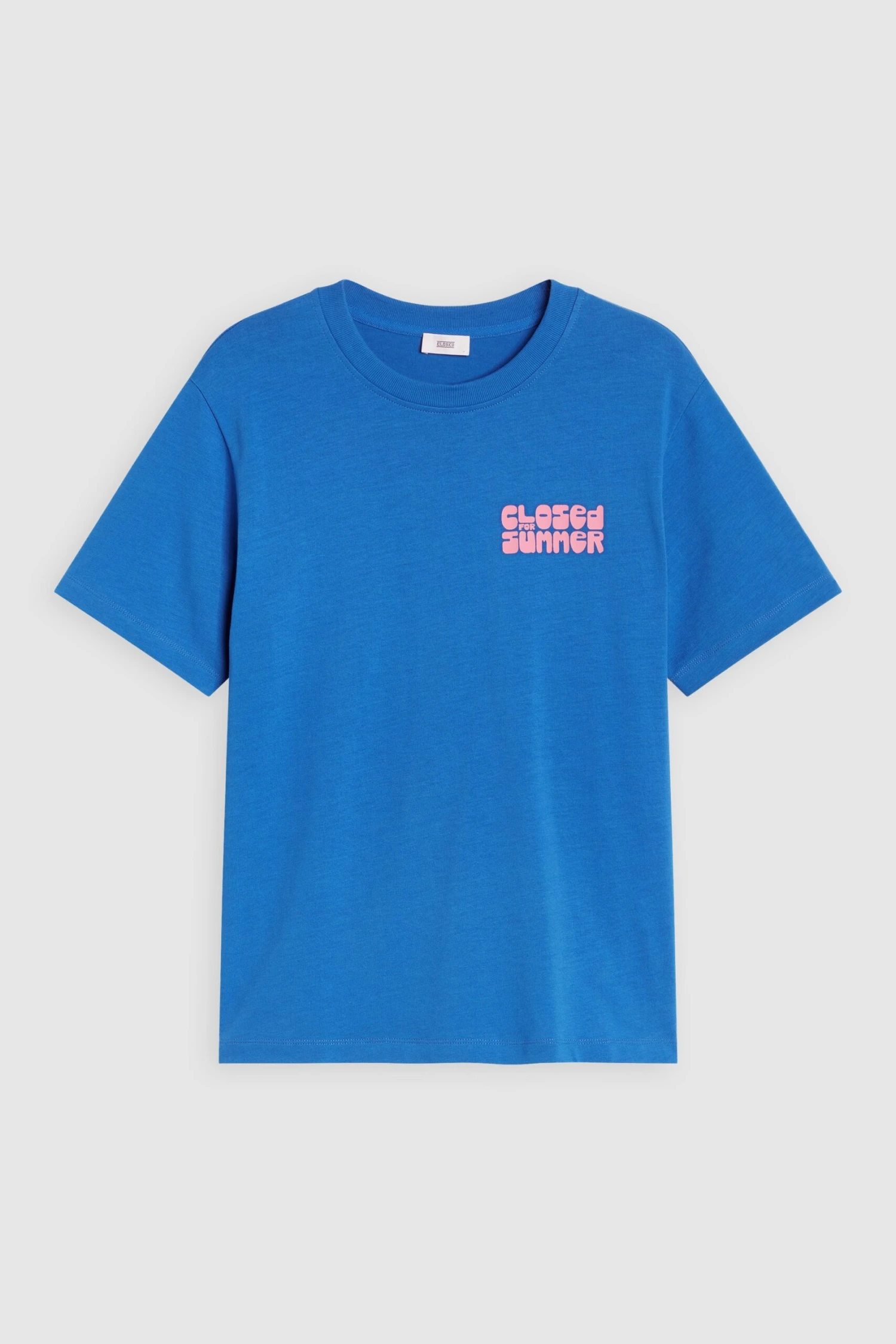 Regular Fit aus reiner Baumwolle: T-Shirt mit geripptem Rundhalsausschnitt und Closed-Print auf der Vorderseite.