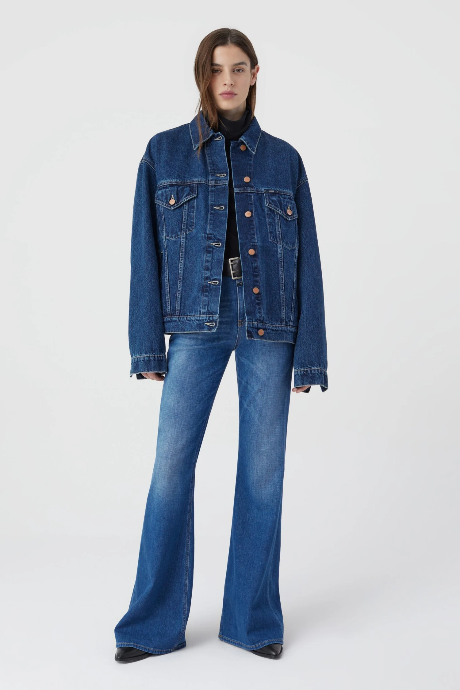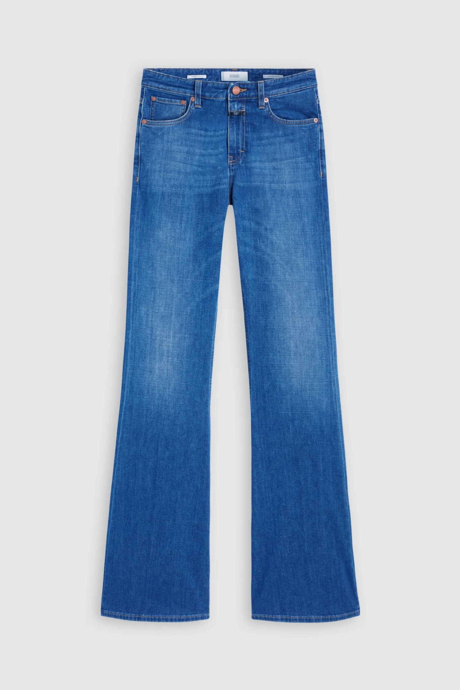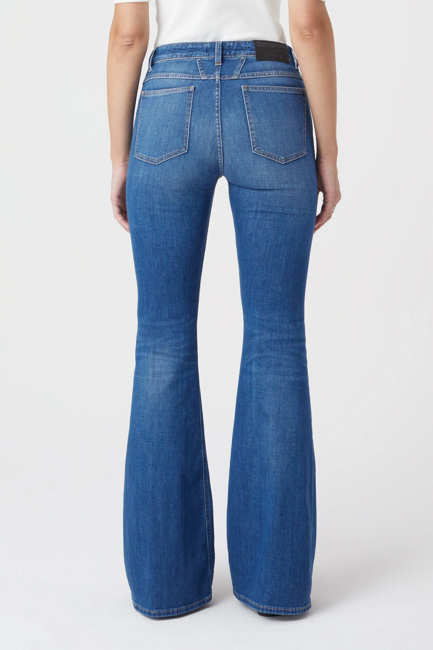 Skinny Fit im 5-Pocket-Style mit hohem Bund und ausgestellter Beinform. Aus italienischem Comfort Stretch Denim von Candiani. Teil unserer nachhaltigen Denim-Linie A BETTER BLUE und zu 100 Prozent in Italien gefertigt.