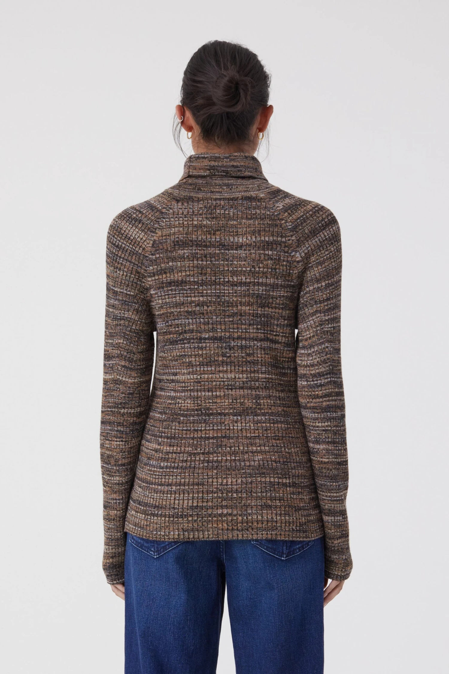 Aus italienischem Garn mit mehrfarbigem Mouliné-Effekt. Hierbei werden beim Stricken der Artikel drei unterschiedlich farbige Garne eingesetzt, sodass zufällige Effekte und Muster entstehen. Diese Vorgehensweise macht jedes Teil zum Unikat. Die gerippte Struktur verleiht dem Rollkragenpullover im Slim Fit Elastizität.