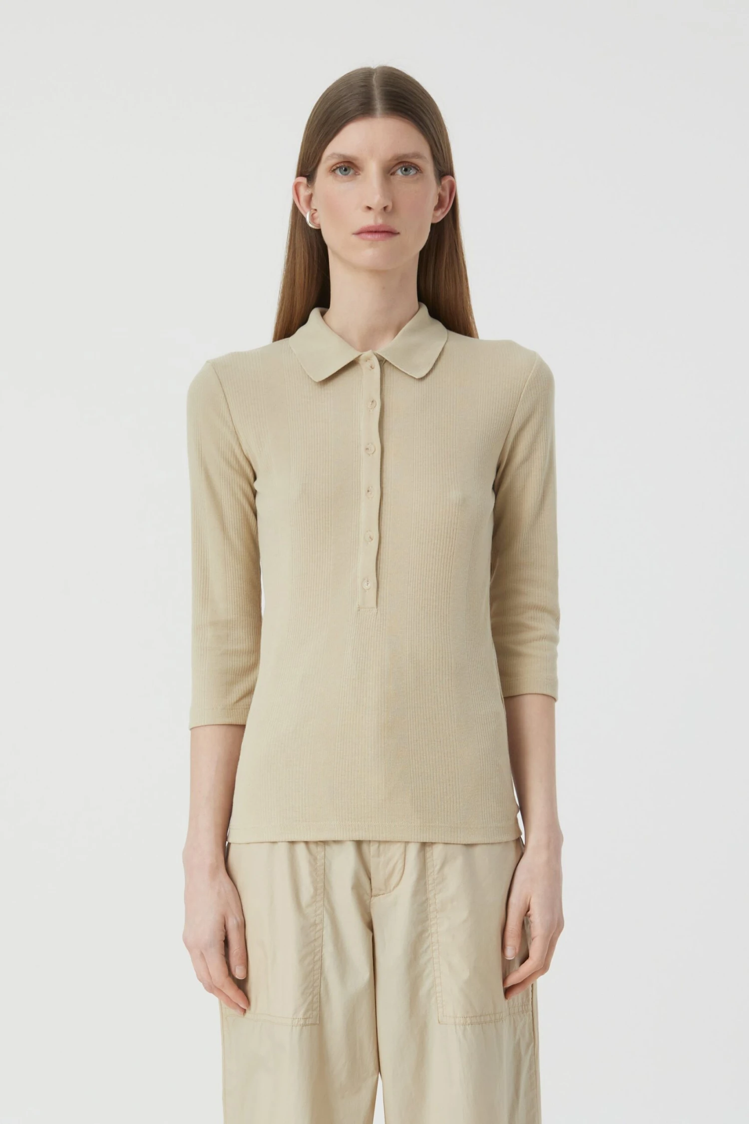 Aus Baumwolle und recyceltem Polyester gefertigt: Geripptes Poloshirt mit Kragen im Slim Fit. Mit gerader Knopfleiste, Knöpfe in Horn-Optik und Saumabschluss.