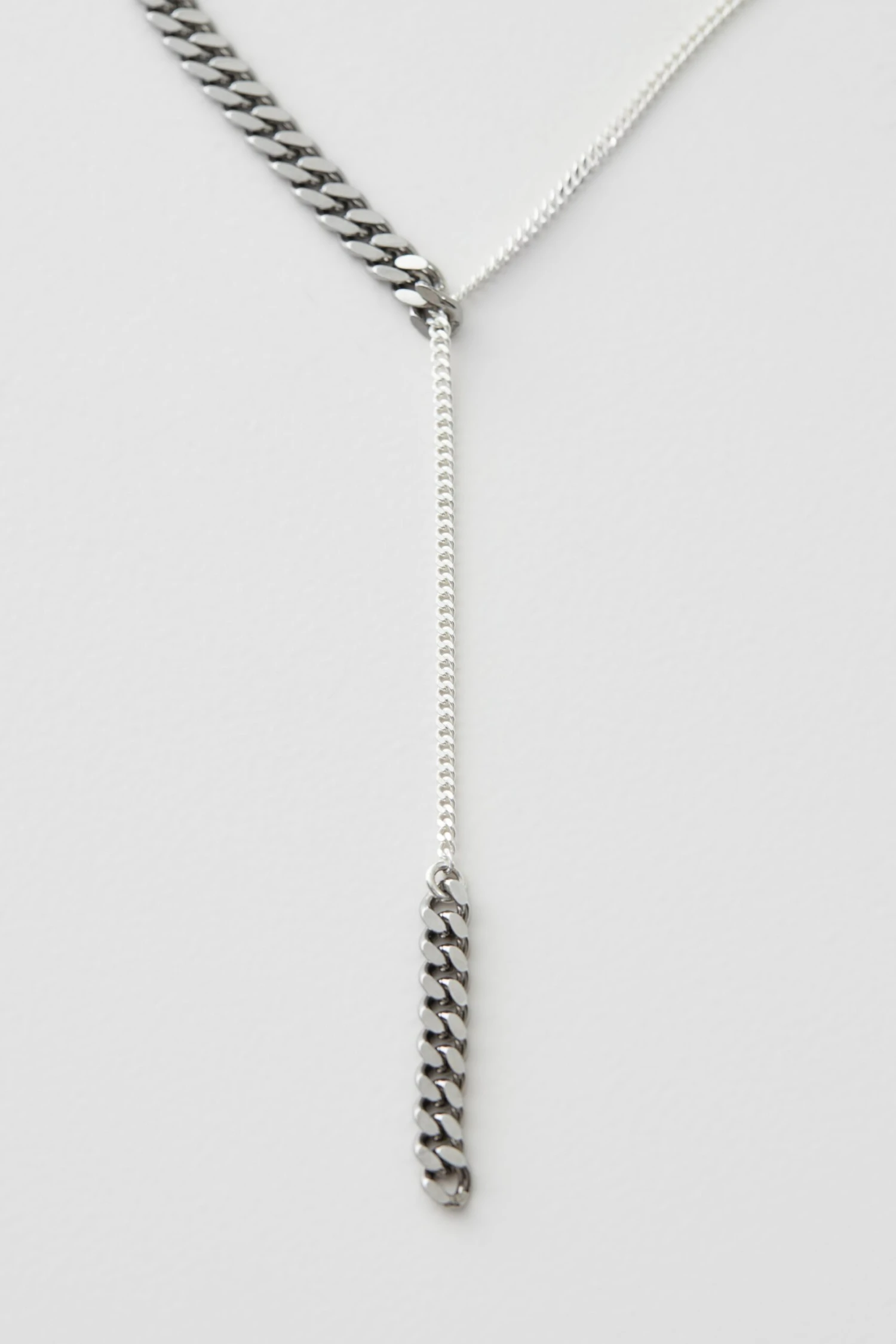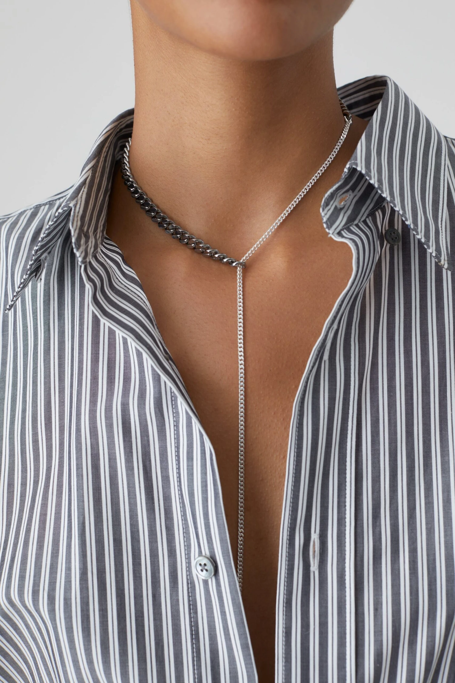 Silber-Halskette von Schmuckdesignerin Saskia Diez mit Lasso-Verschluss: das eine Ende der Kette wird durch eine feine Öse gezogen. Handgefertigt in Deutschland.
