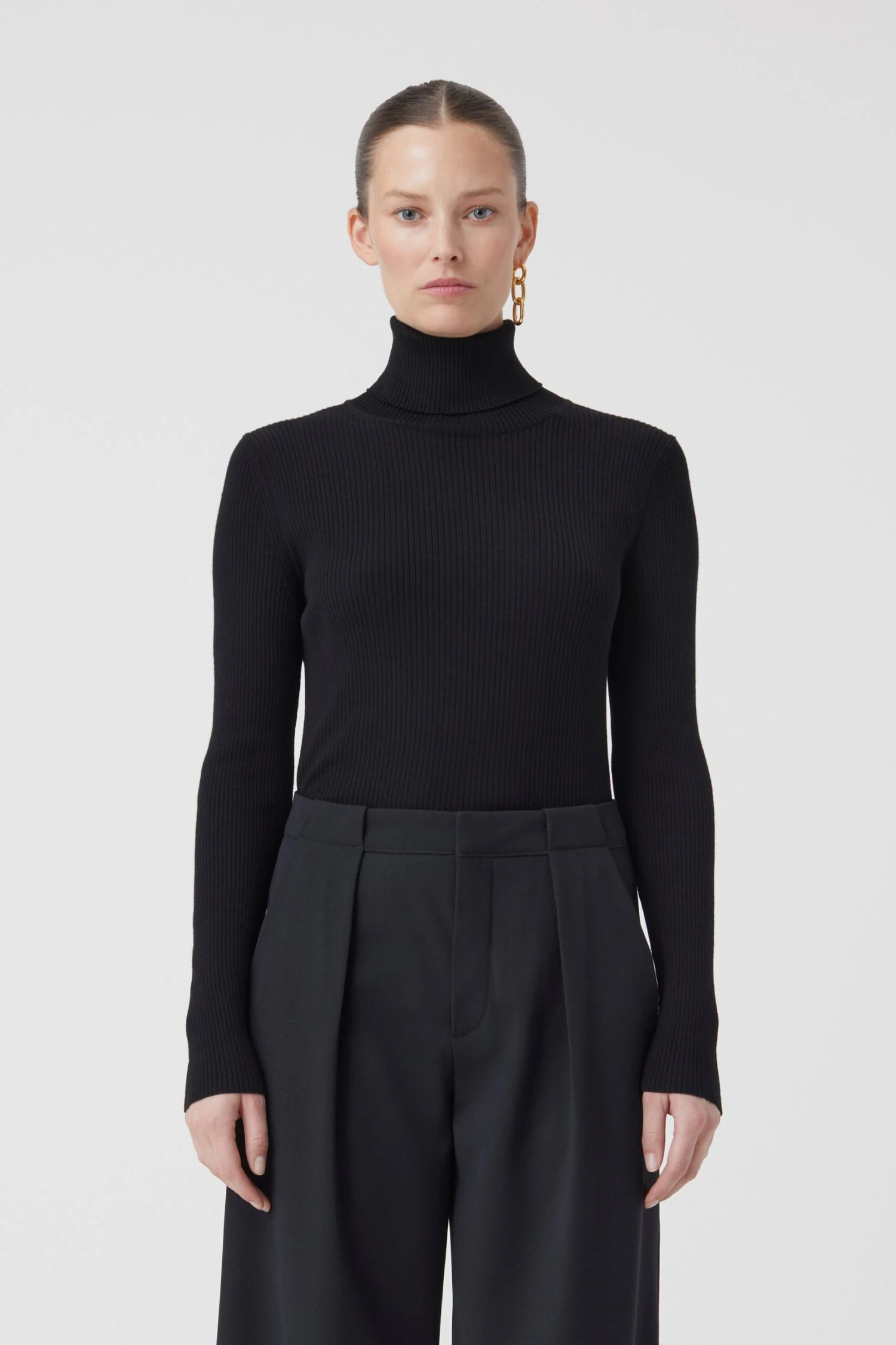 Rollkragenpullover im Slim Fit aus reiner Bio-Baumwolle. Rippstrick mit geradem Ärmel- und Saumabschluss.
